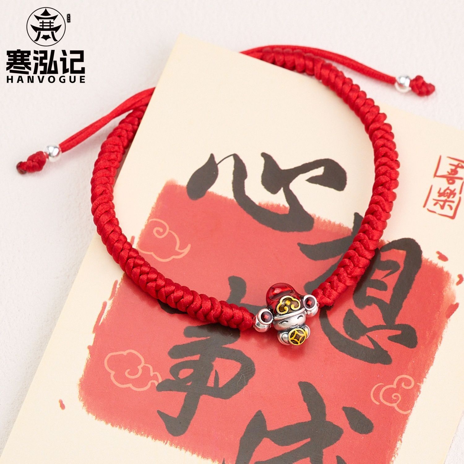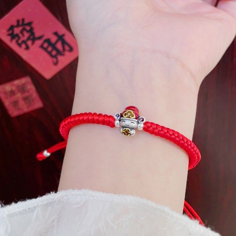 Little God of Wealth Bracelet Woven Red Rope Handmade Casual New Year Bracelet Temperament Couple's Zodiac Year Best Friend Gift