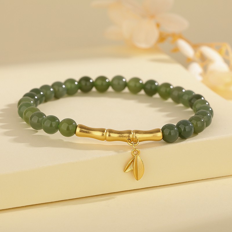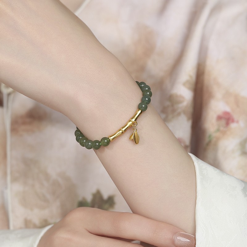Color: Silver gold-plated bamboo gradient color hetian jade bracelet