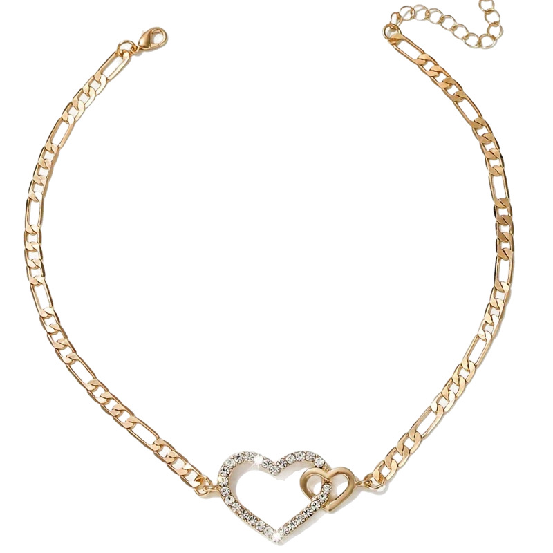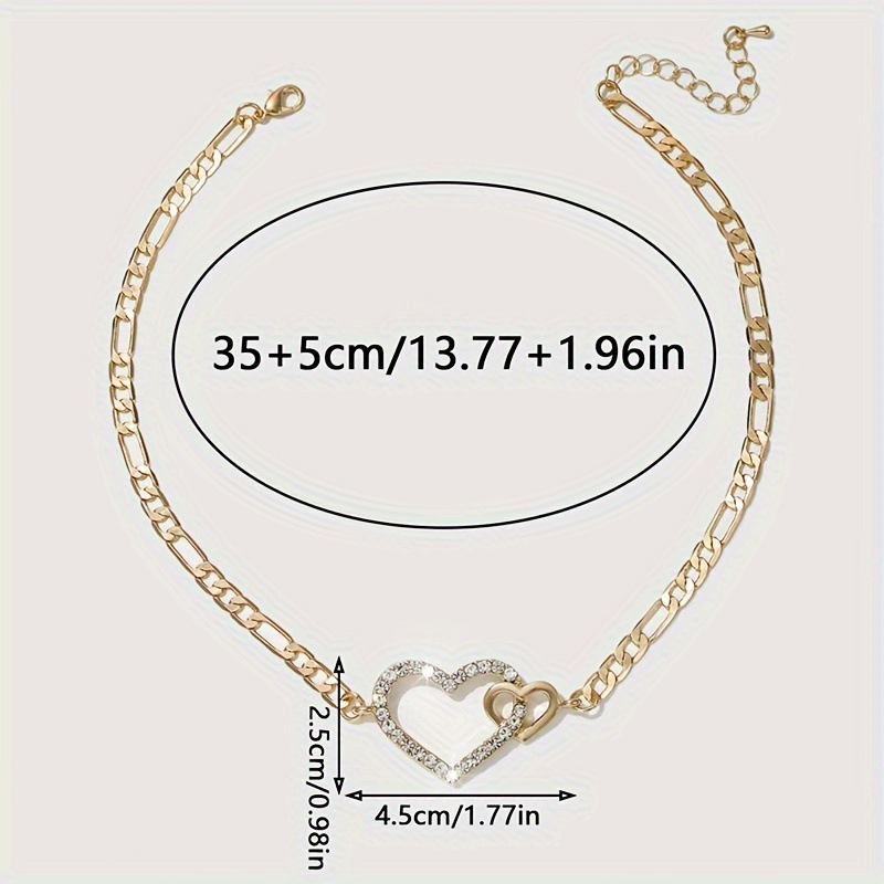 European and American Cross-border New Fashion Double Love Heart-shaped Clavicle Necklace with Rhinestone Women's Simple Heart-shaped Necklace