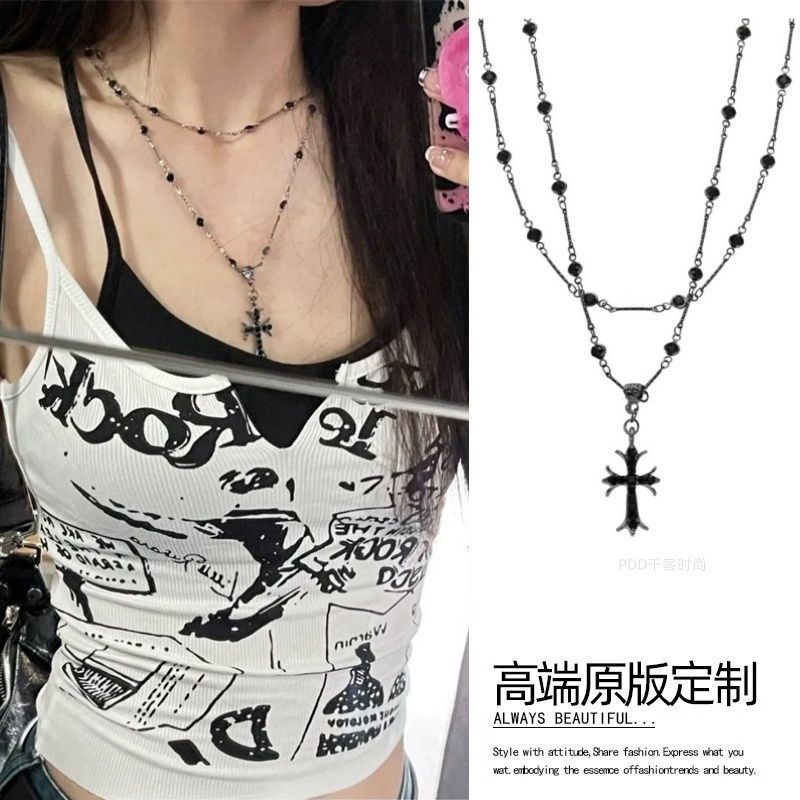 Color: Dark black cross stacked necklace