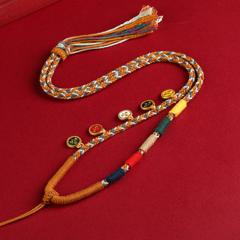 Five-Way Necklace Xizang Hand-Woven Cotton Strand Woven Pendant Necklace Thangka Lanyard Buddha Pendant