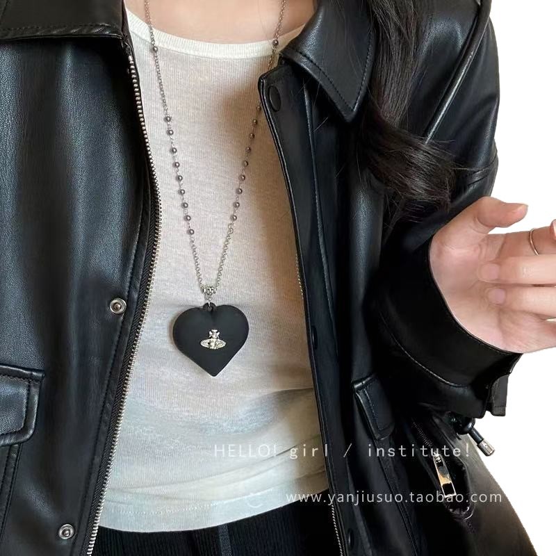 Black Pearl Love Pendant Necklace Women's Fashion Baroque Style Cross Fashion High-grade Simple All-match Necklace