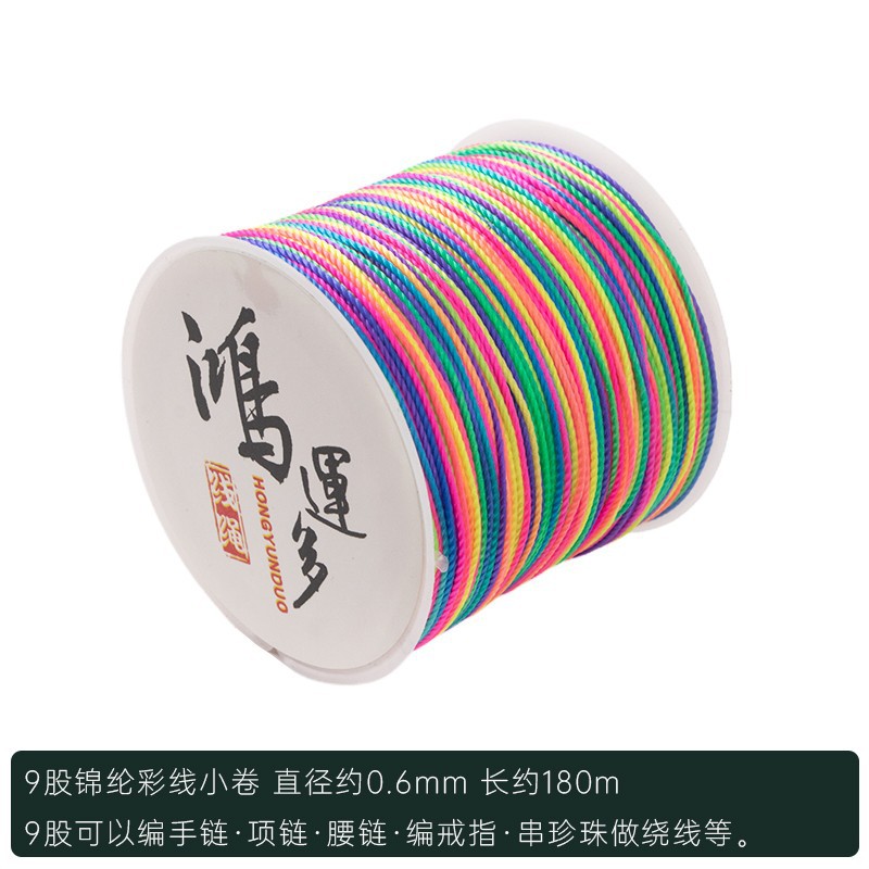 Color: 9 strands of colorful nylon strands in small rolls, free 2 rice dumplings + colorful beads