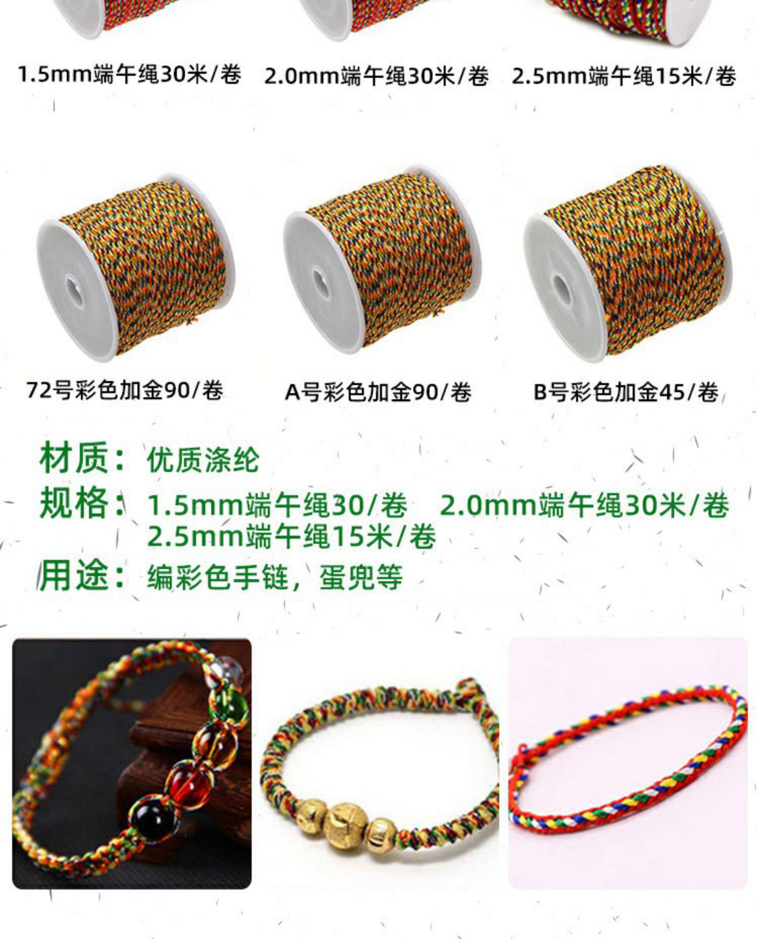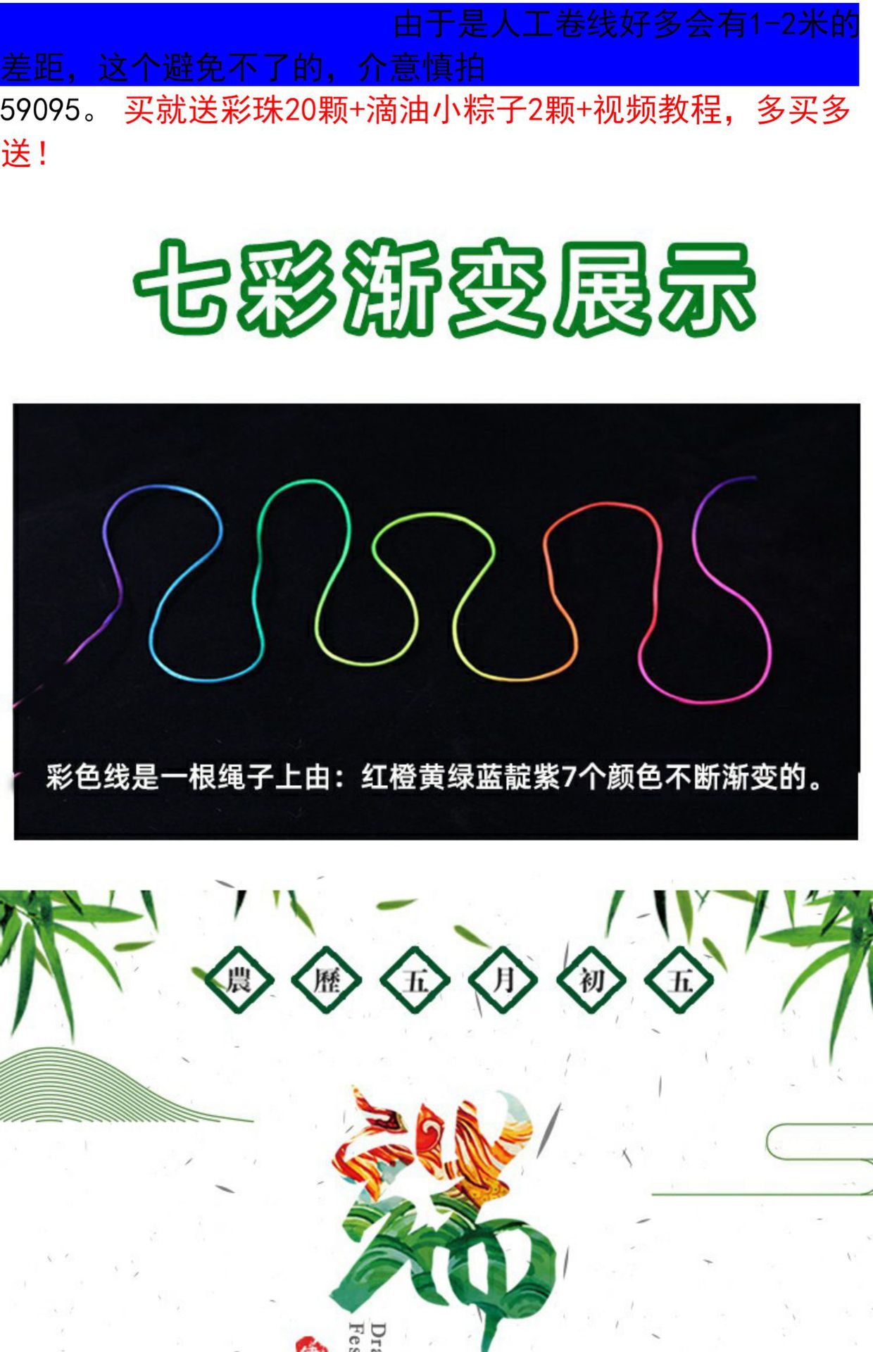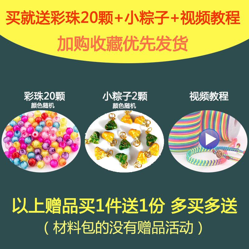 Color: 3 strands of colorful nylon strands in small rolls, free 2 rice dumplings + colorful beads