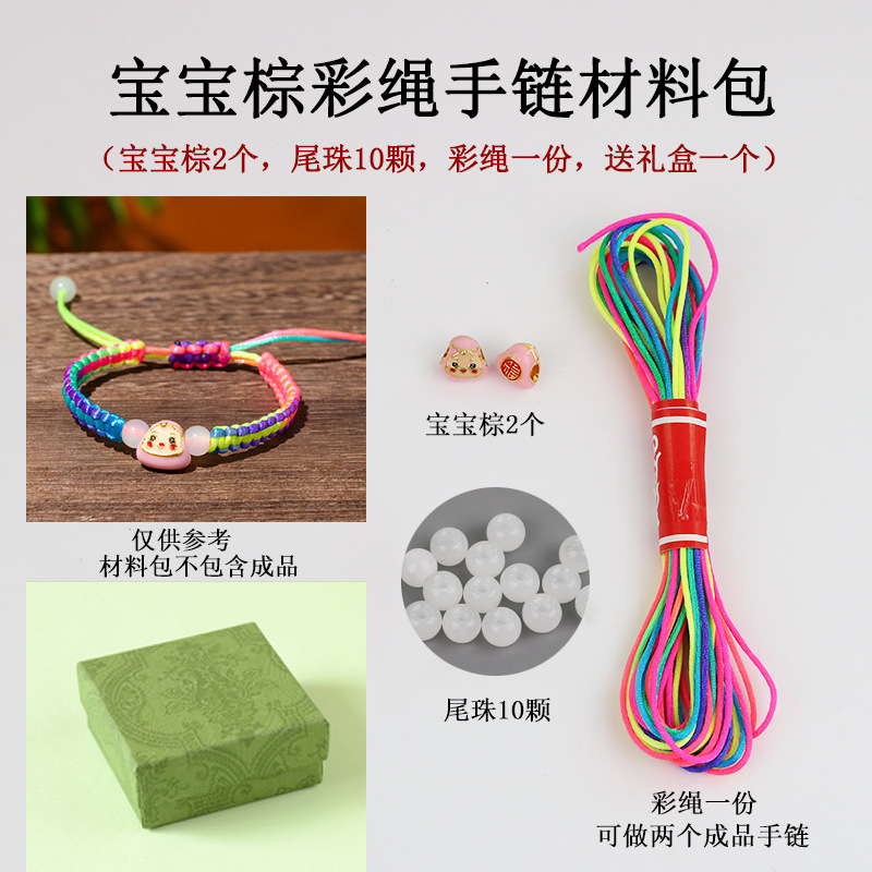 Color: Pink rice dumpling baby colorful rope bracelet material package only gift box
