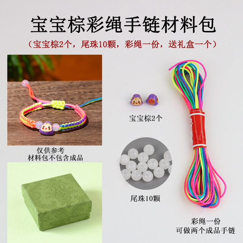 Color: Purple rice dumpling baby colorful rope bracelet material package only gift box