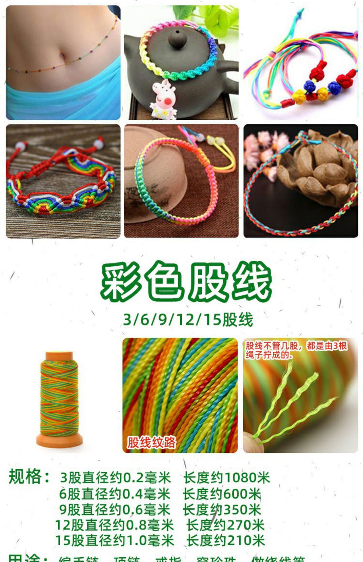 Color: 15 strands of colorful nylon strands in small rolls, free 2 rice dumplings + colorful beads