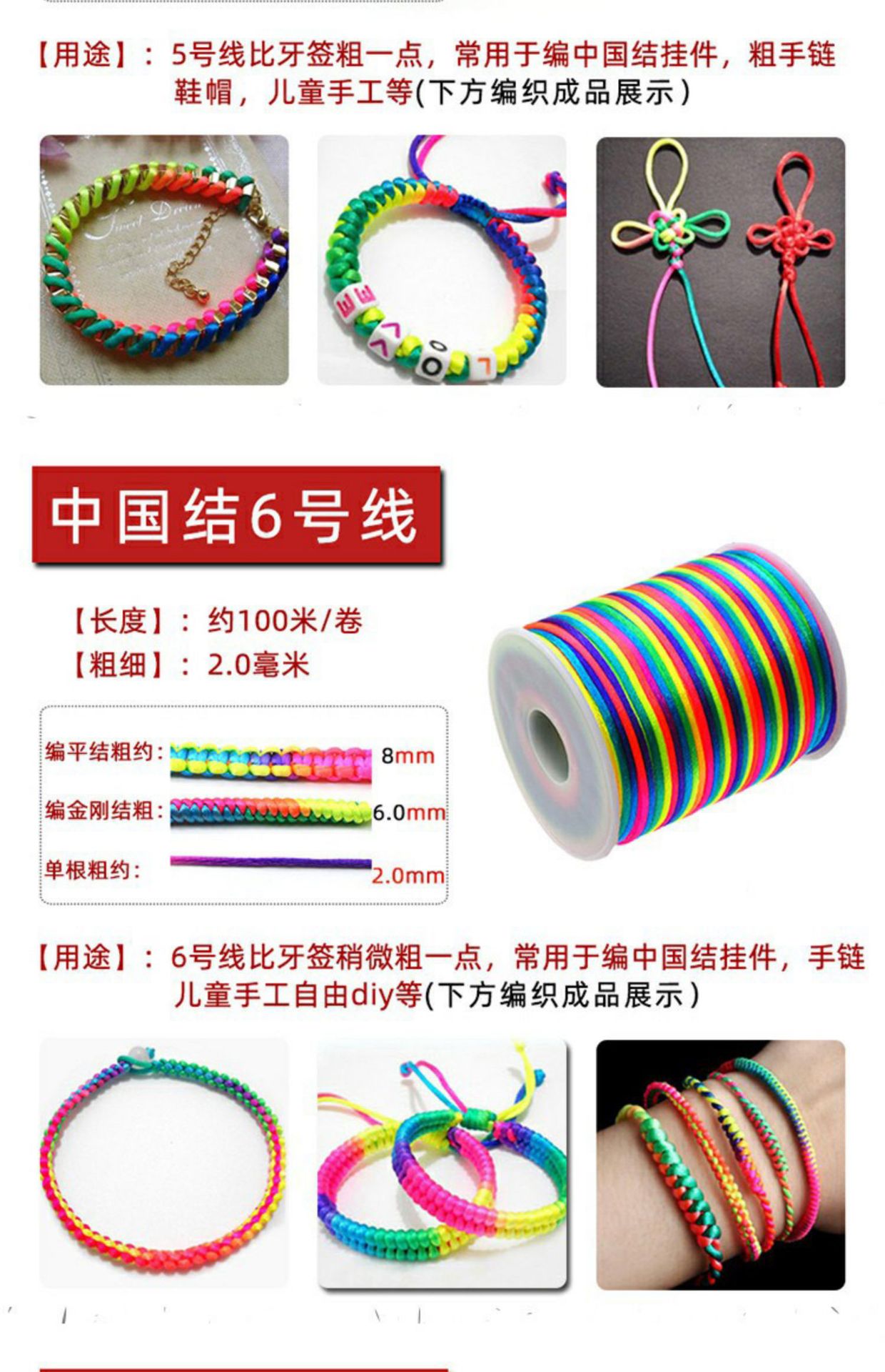 Color: 6 strands of colorful nylon strands in small rolls, free 2 rice dumplings + colorful beads