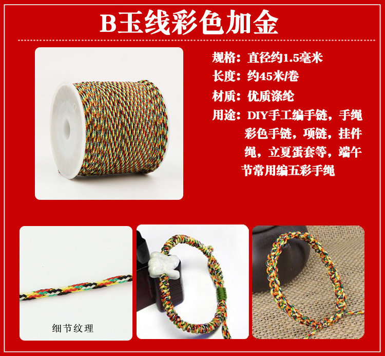 Color: No. 72 jade thread color plus gold 100m free 2 small rice dumplings + colorful beads