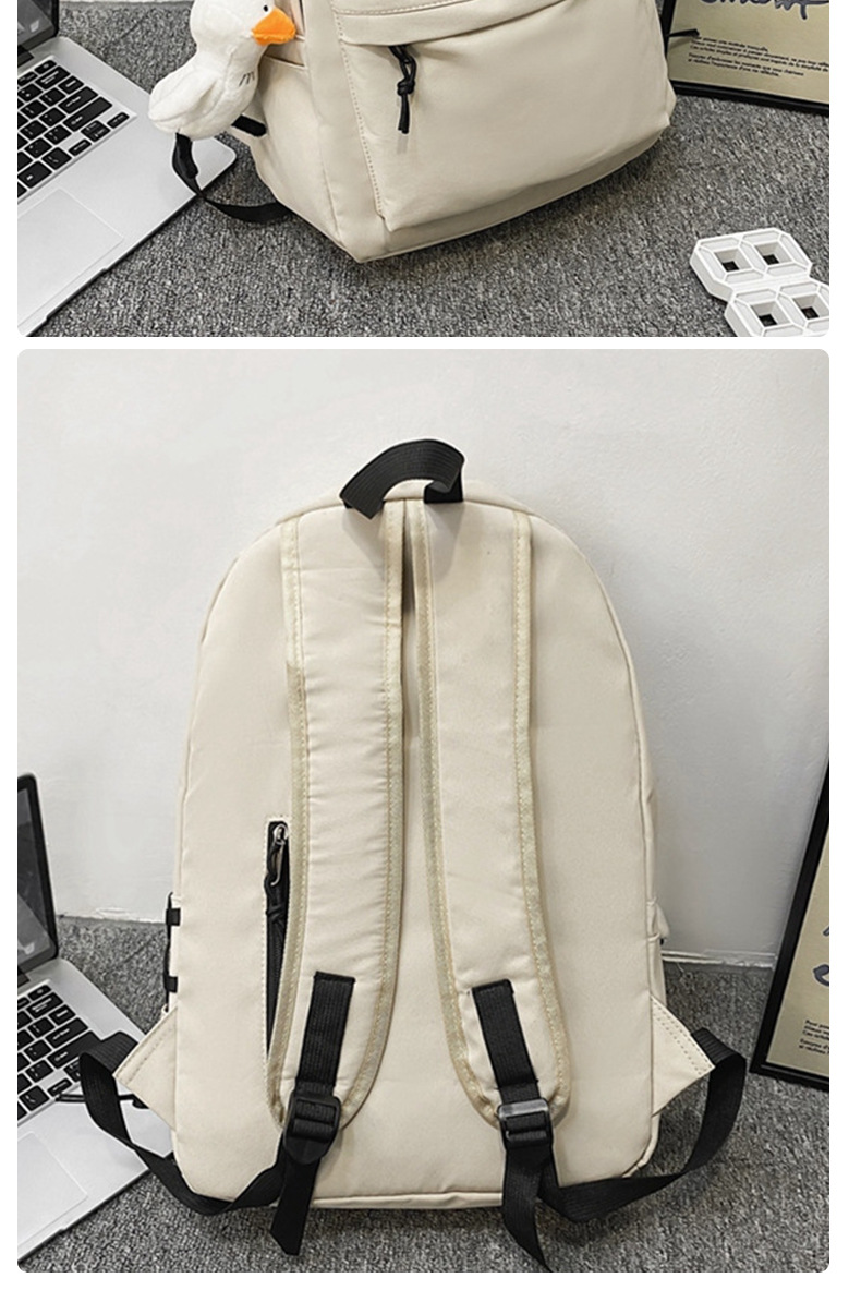 Casual Backpack for Boys, Student Backpack, Casual Japanese Style Girl Travel Bag with Pendant, Large Capacity Pure Color Bag