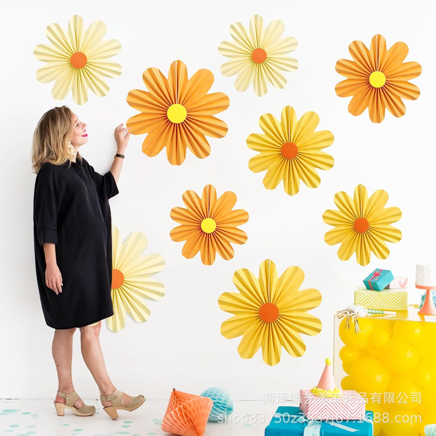Spring Atmosphere Arrangement Window Paper Fan Pendant Store Decoration Kindergarten Aerial Pendant Jewelry Store Shopping Mall Store