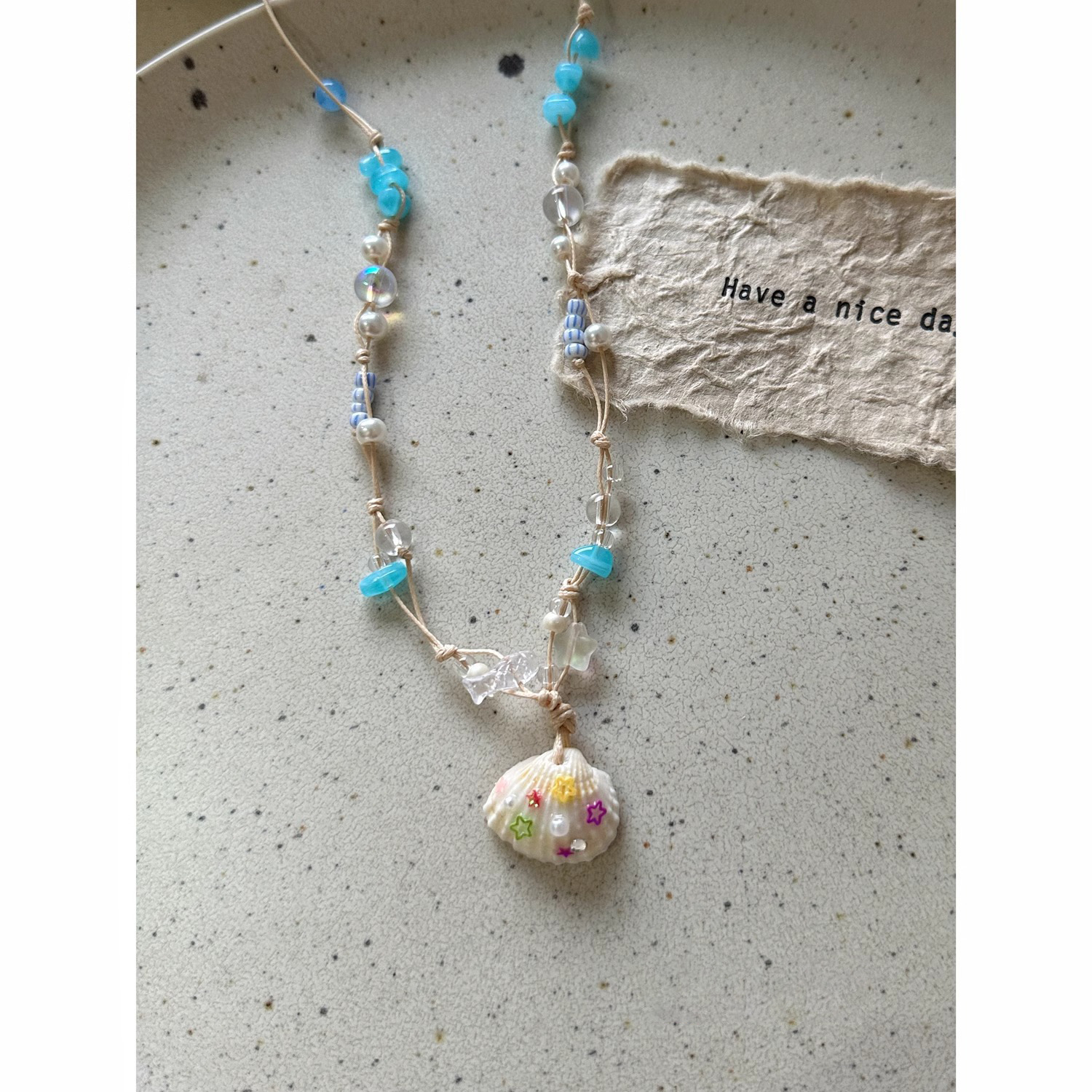 Island Vacation Style ~ Shell Stars Beaded Necklace Women's Summer Fresh Ins Niche All-match Rope Wided Clavicle Chain