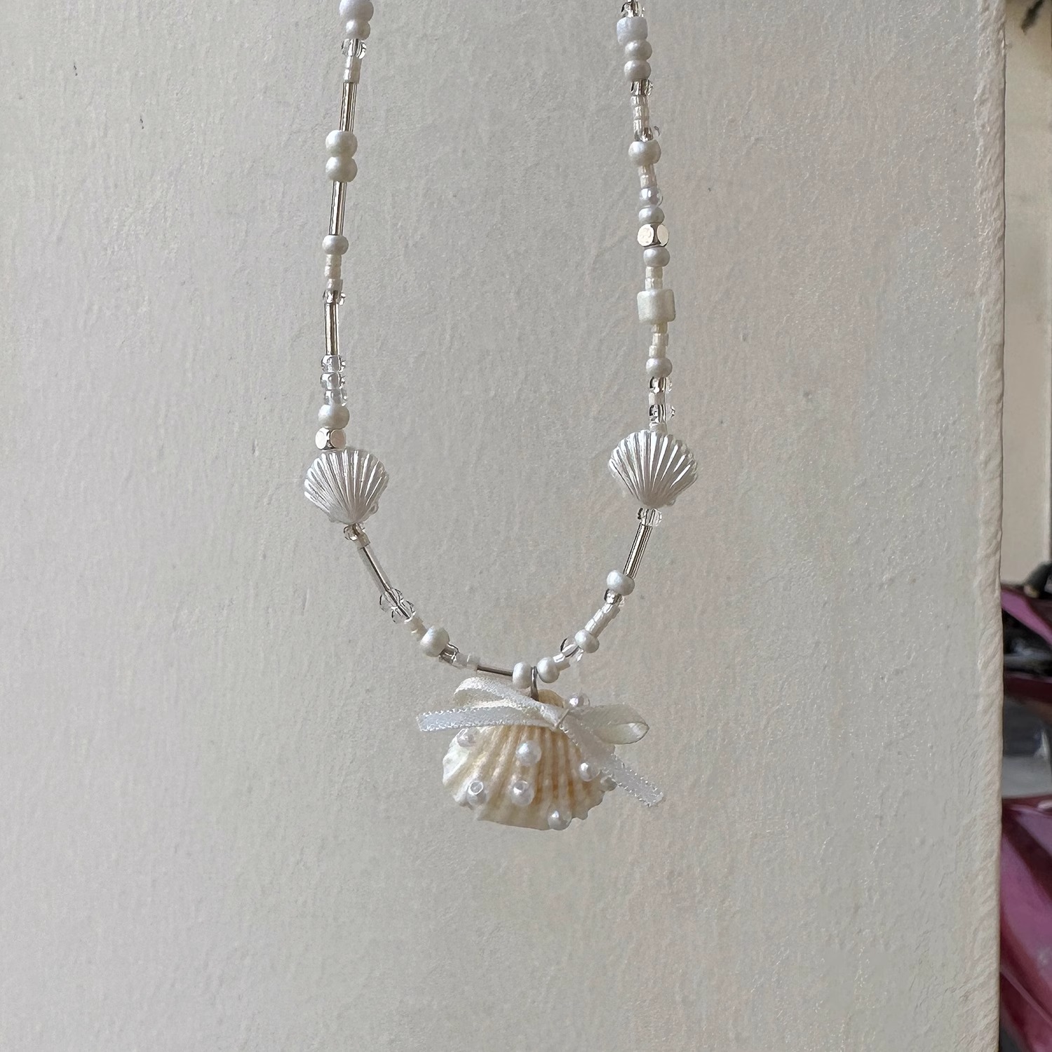 Frosted iridescent beaded shells
