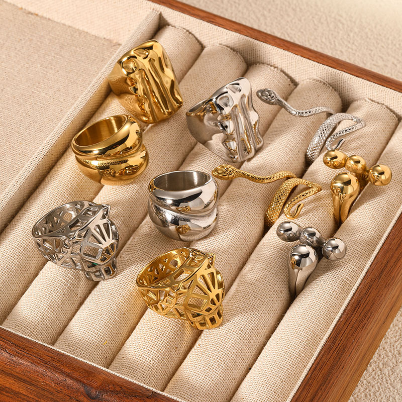 Cross-Border Internet Celebrity Trendy 18K Gold Stainless Steel Glossy Ring European and American Fashion High-End Non-Fading Women's Jewelry Wholesale