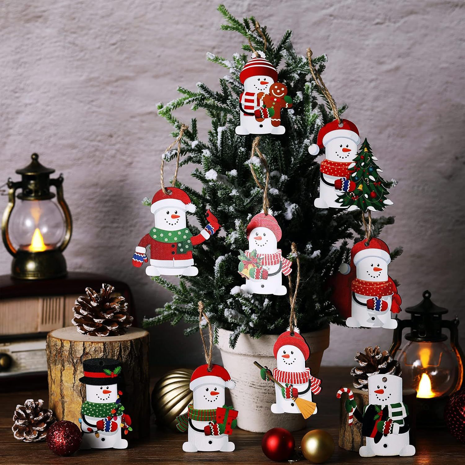 Cute Snowman Christmas Tree Ornaments Wooden Christmas Snowman Hanging Ornaments Winter Decor Snowman Snowman Xmas Tree Pendant