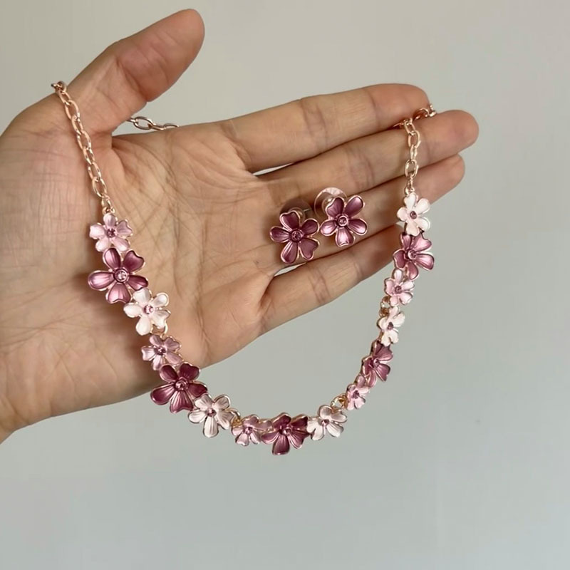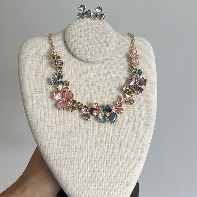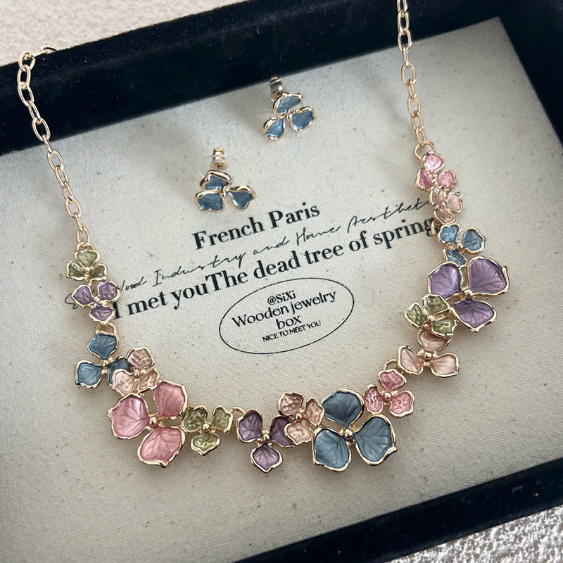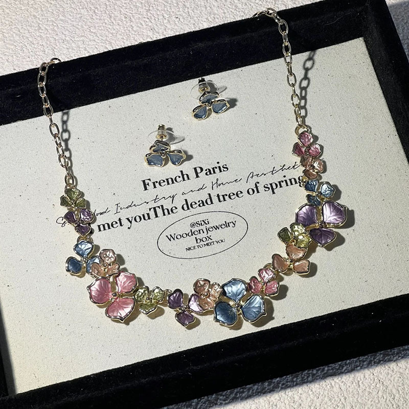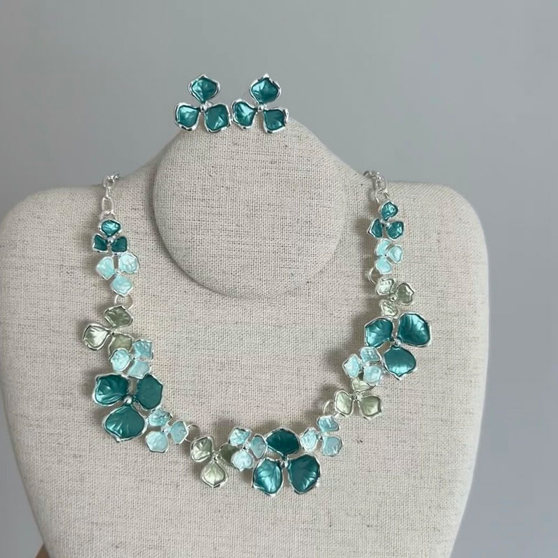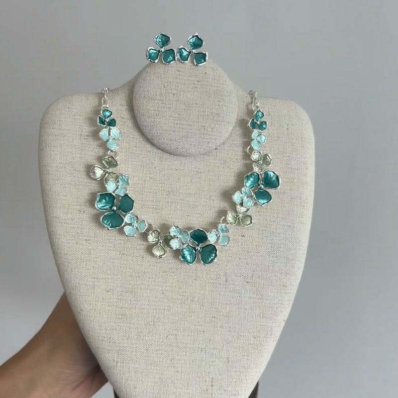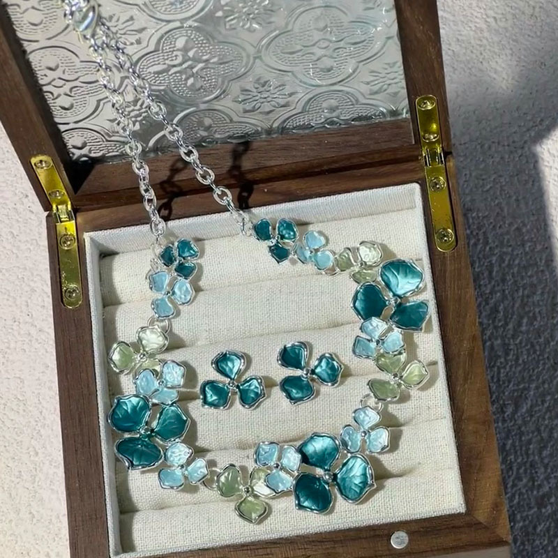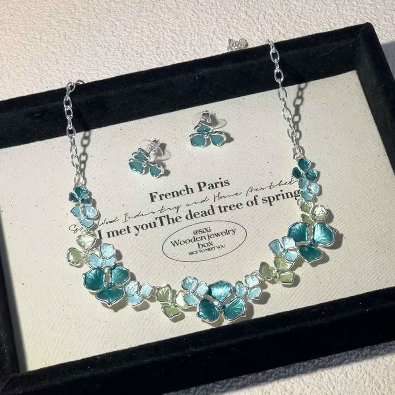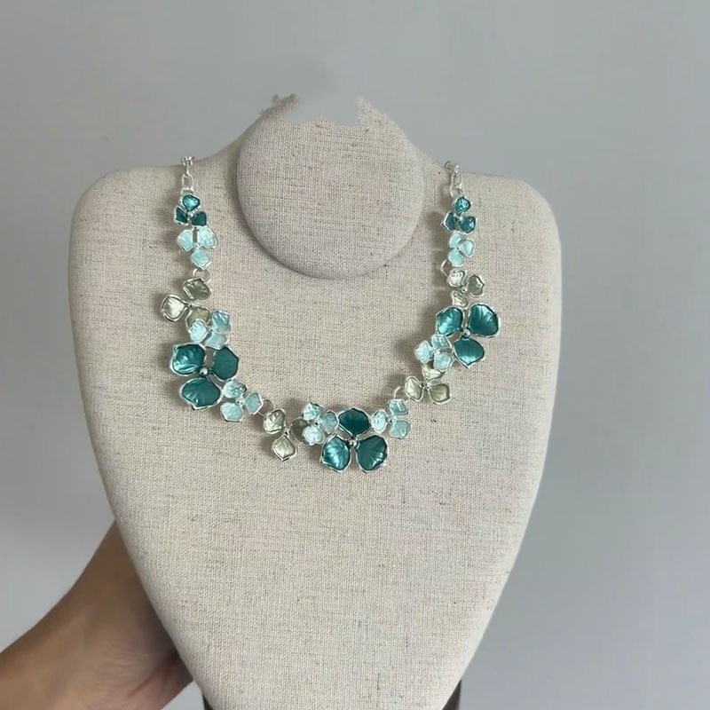 Blue Flower All-match Color Necklace High-end Light Luxury Niche Unique Elegant New Chinese Heavy Industry Middle Ancient Clavicle Chain