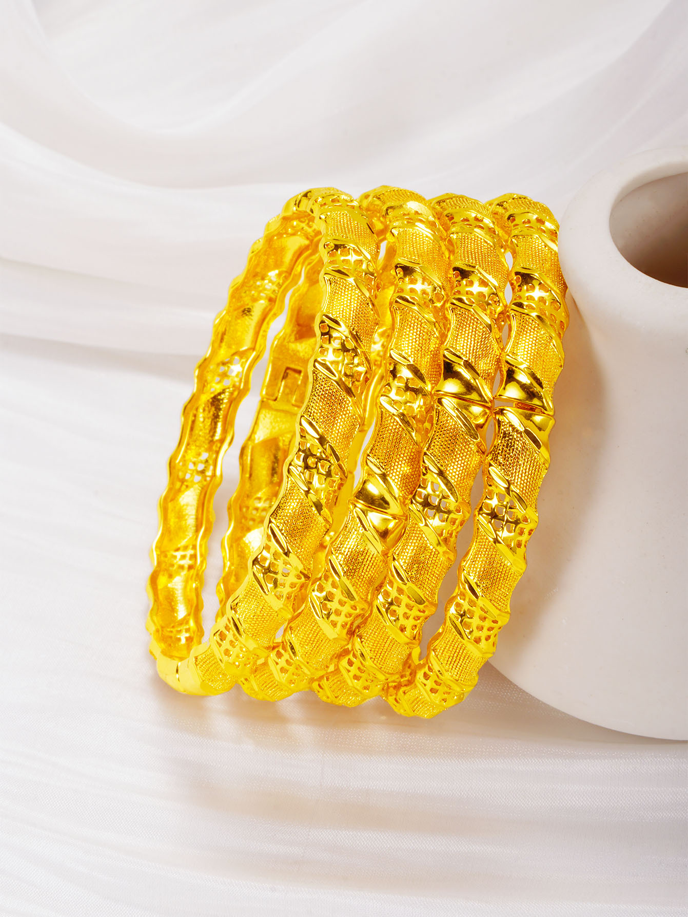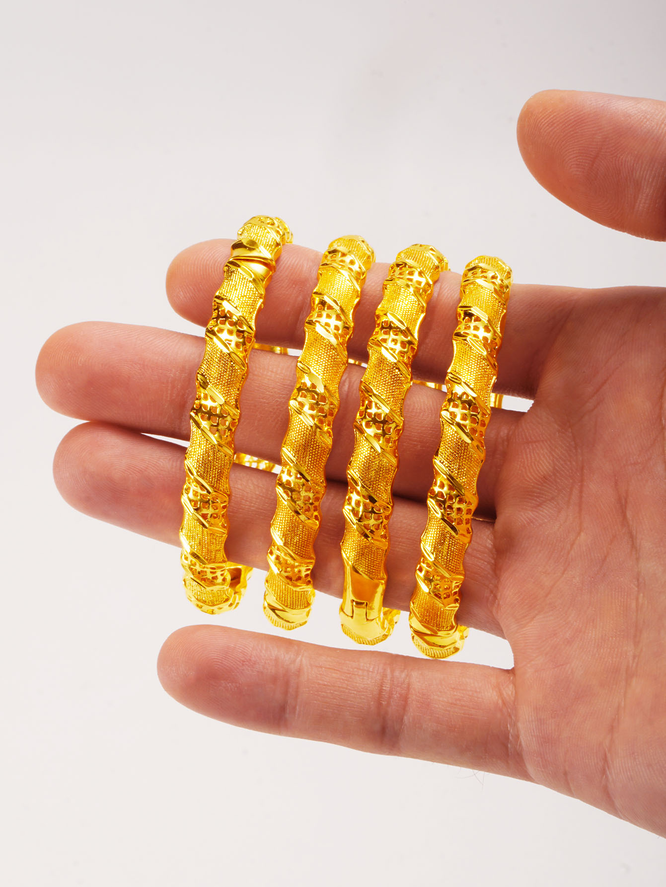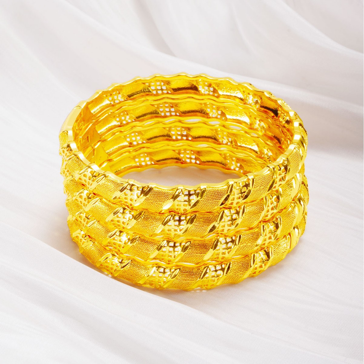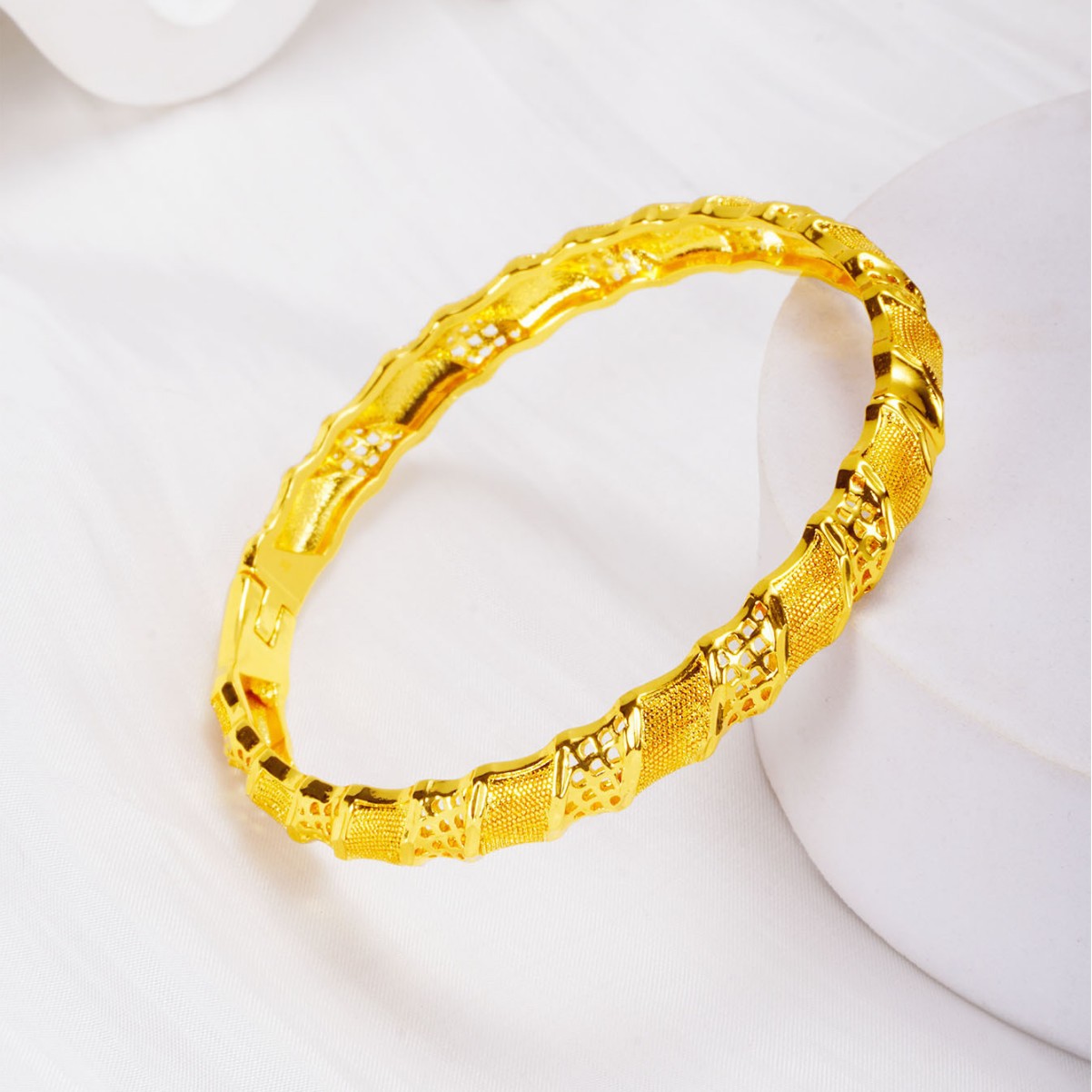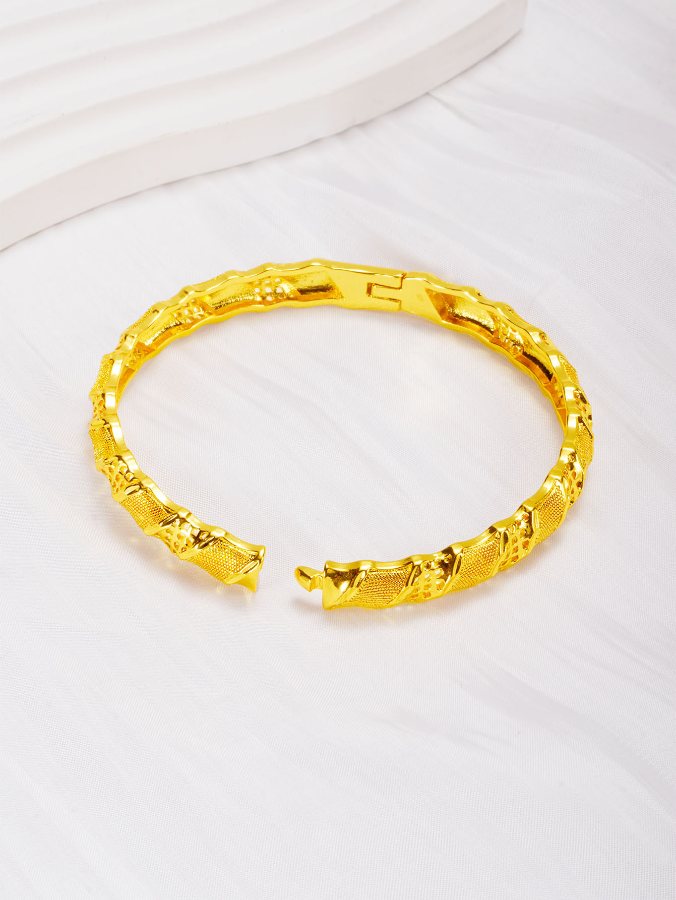 Huixing 24K Gold Buckle Bracelet Women's Fashion Cut Out Stylish Honeycomb Pattern Hand Jewelry Mei Long Accessories Wholesale