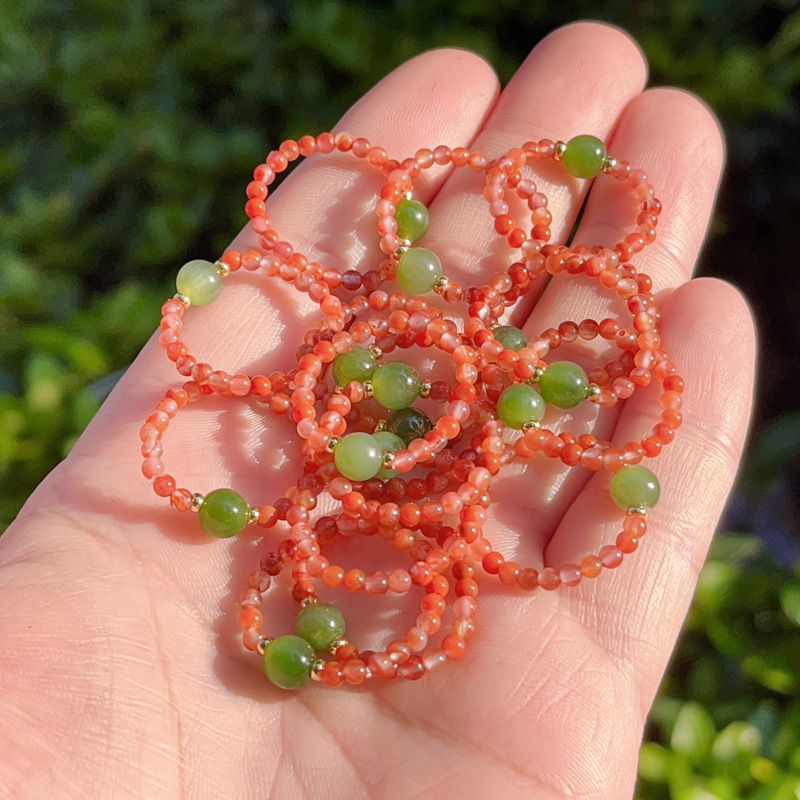 Hot Selling High Quality Jasper Southern Red Pearl Ring Beaded Braided Ring DIY Women's Simple Small Fresh Jewelry