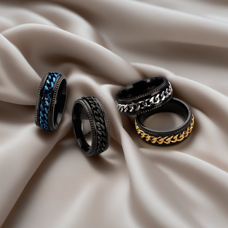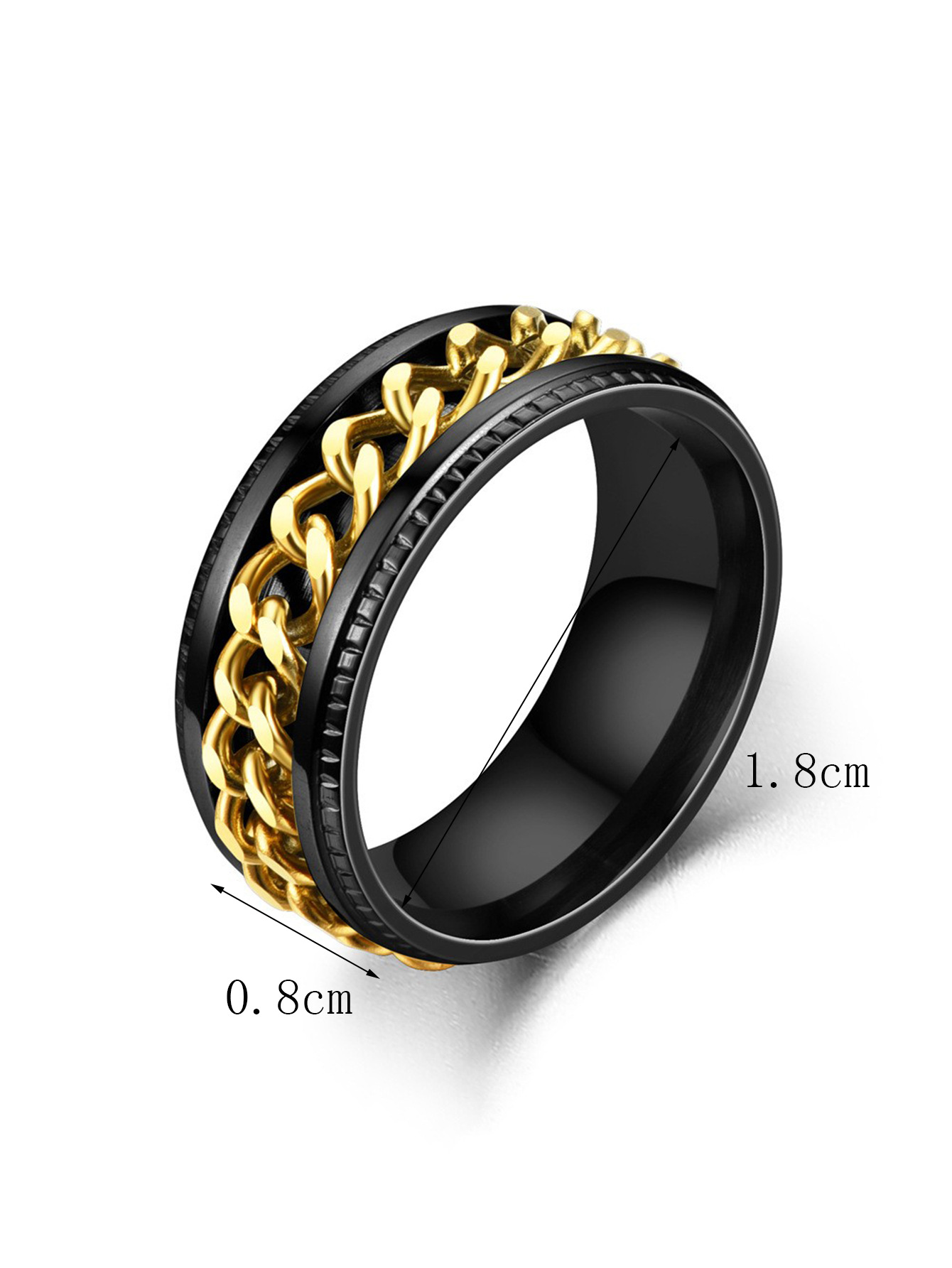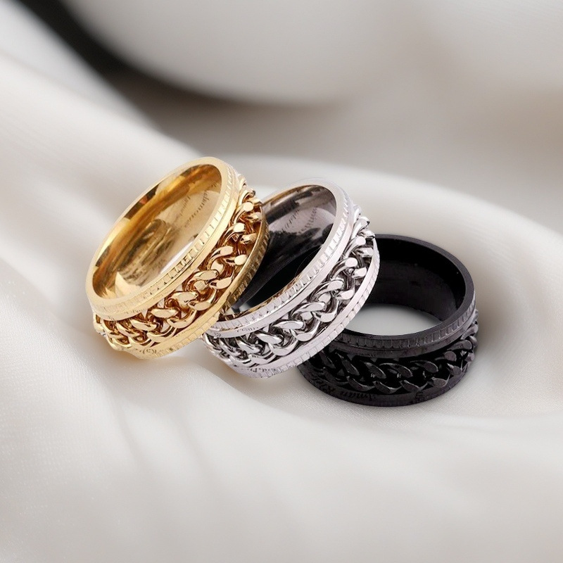 Europe and the United States hot-selling hip-hop men's embossed rotating chain ring personality niche non-fading titanium steel jewelry wholesale