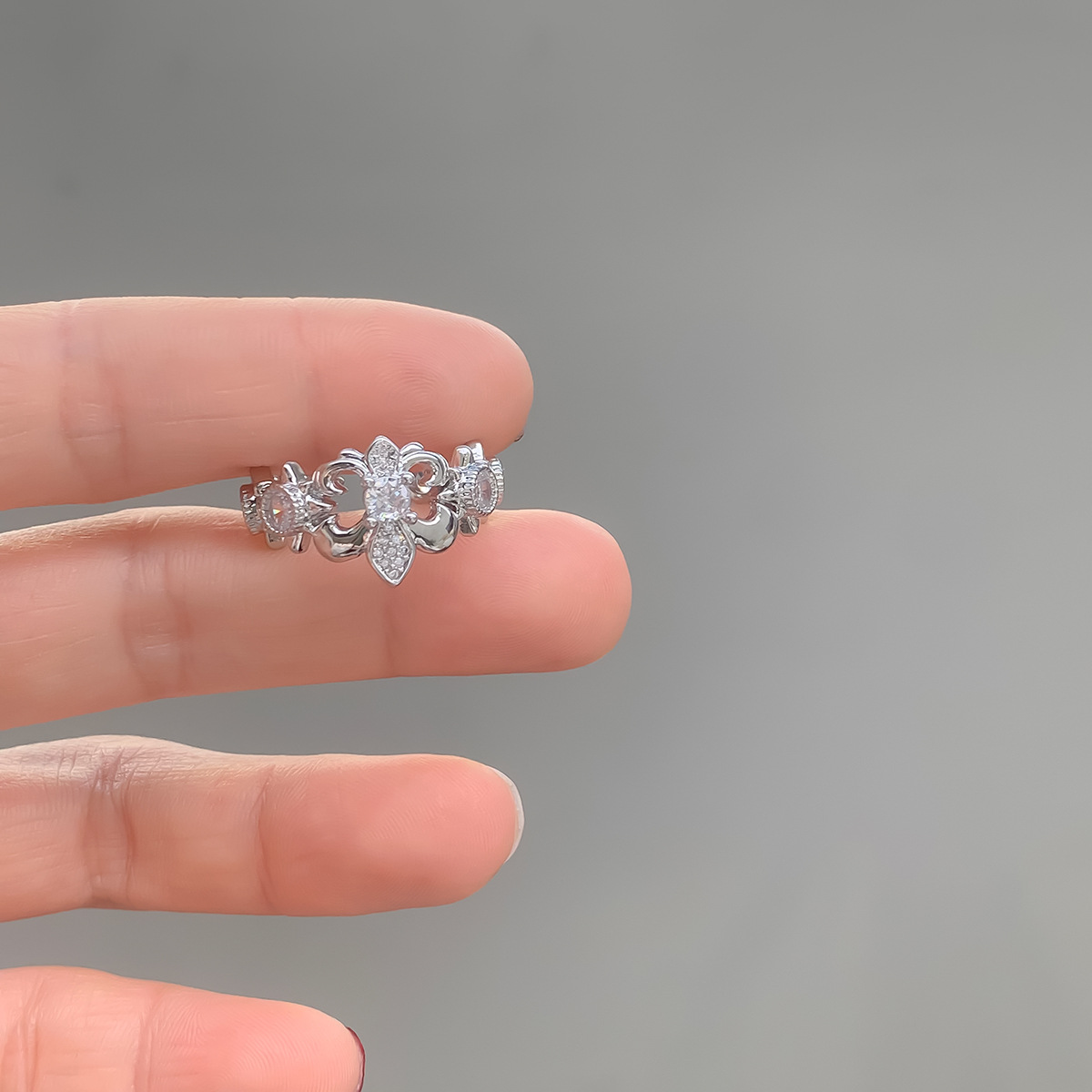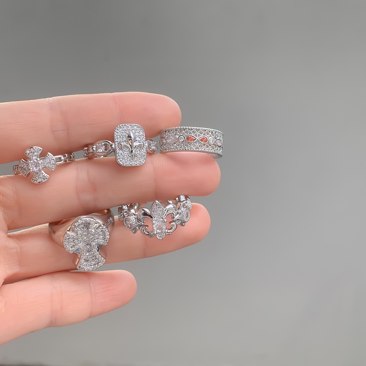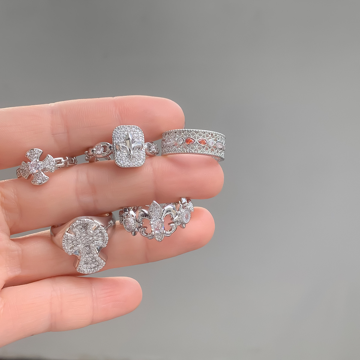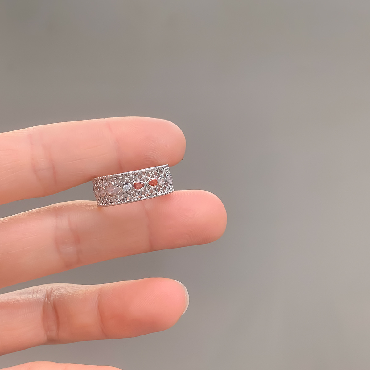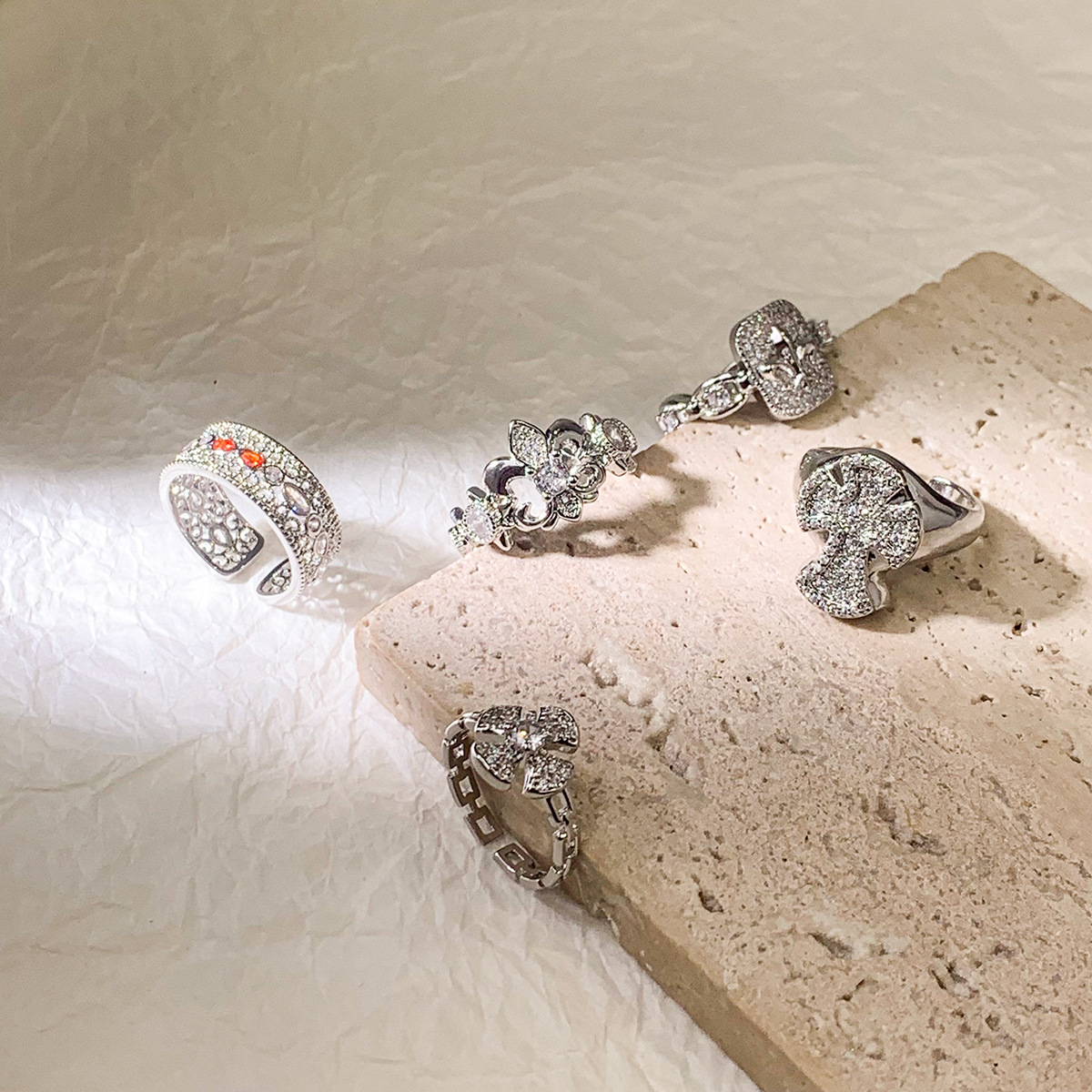 Retro Micro-Encrusted Gemstone Ancient Gold-Plated Index Finger Ring Accessible Luxury High-End Personalized Niche Design Heart Diamond Ring