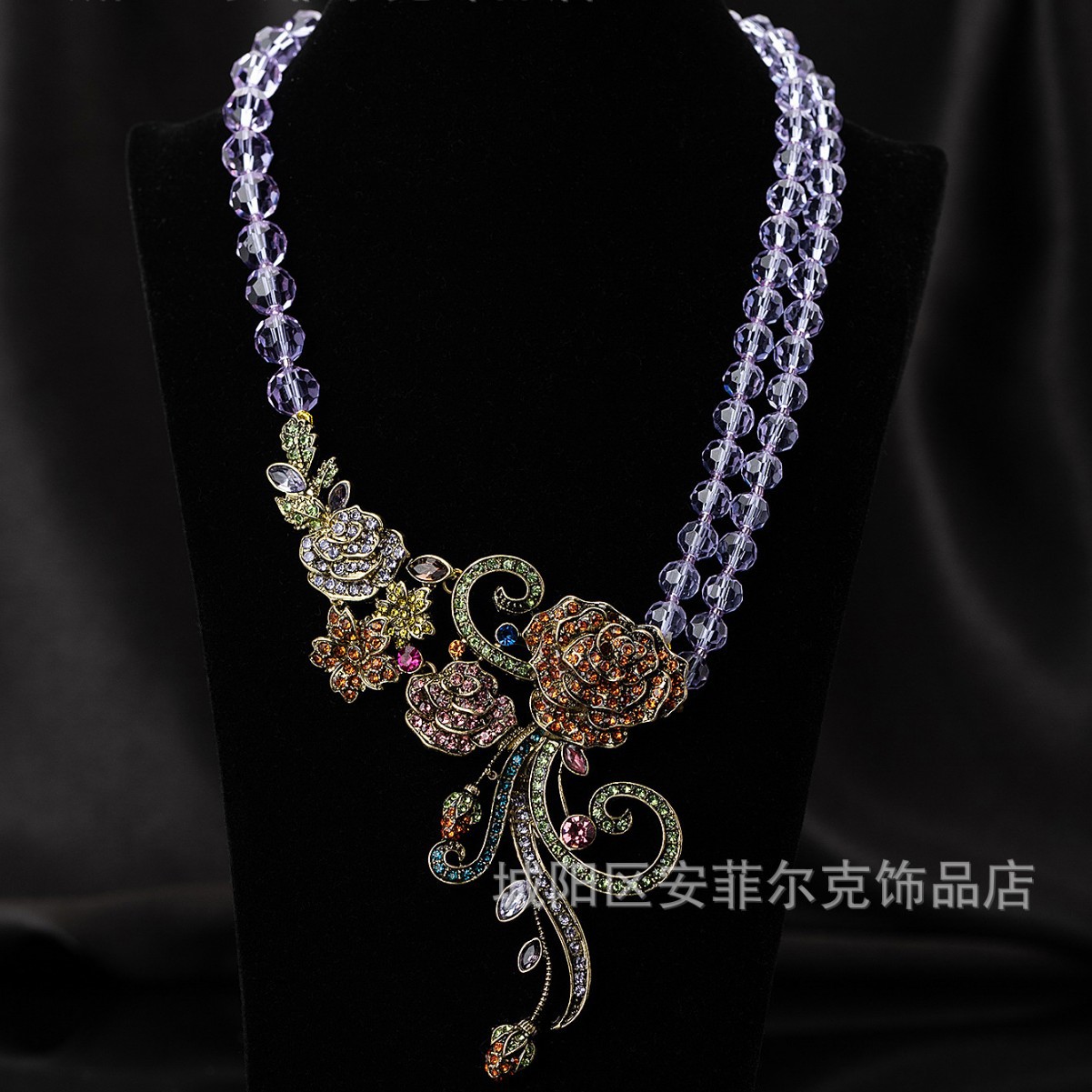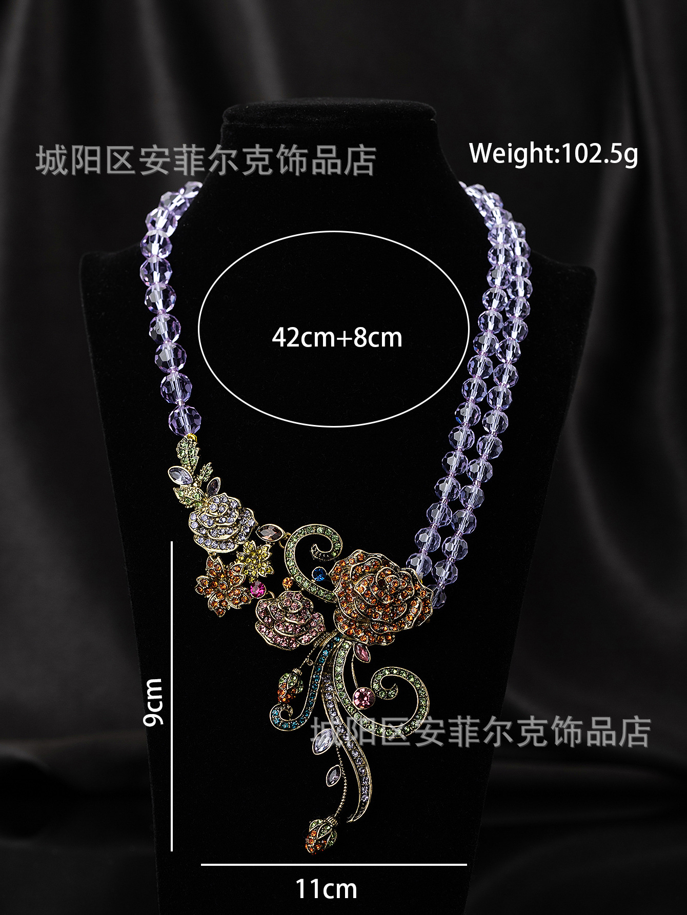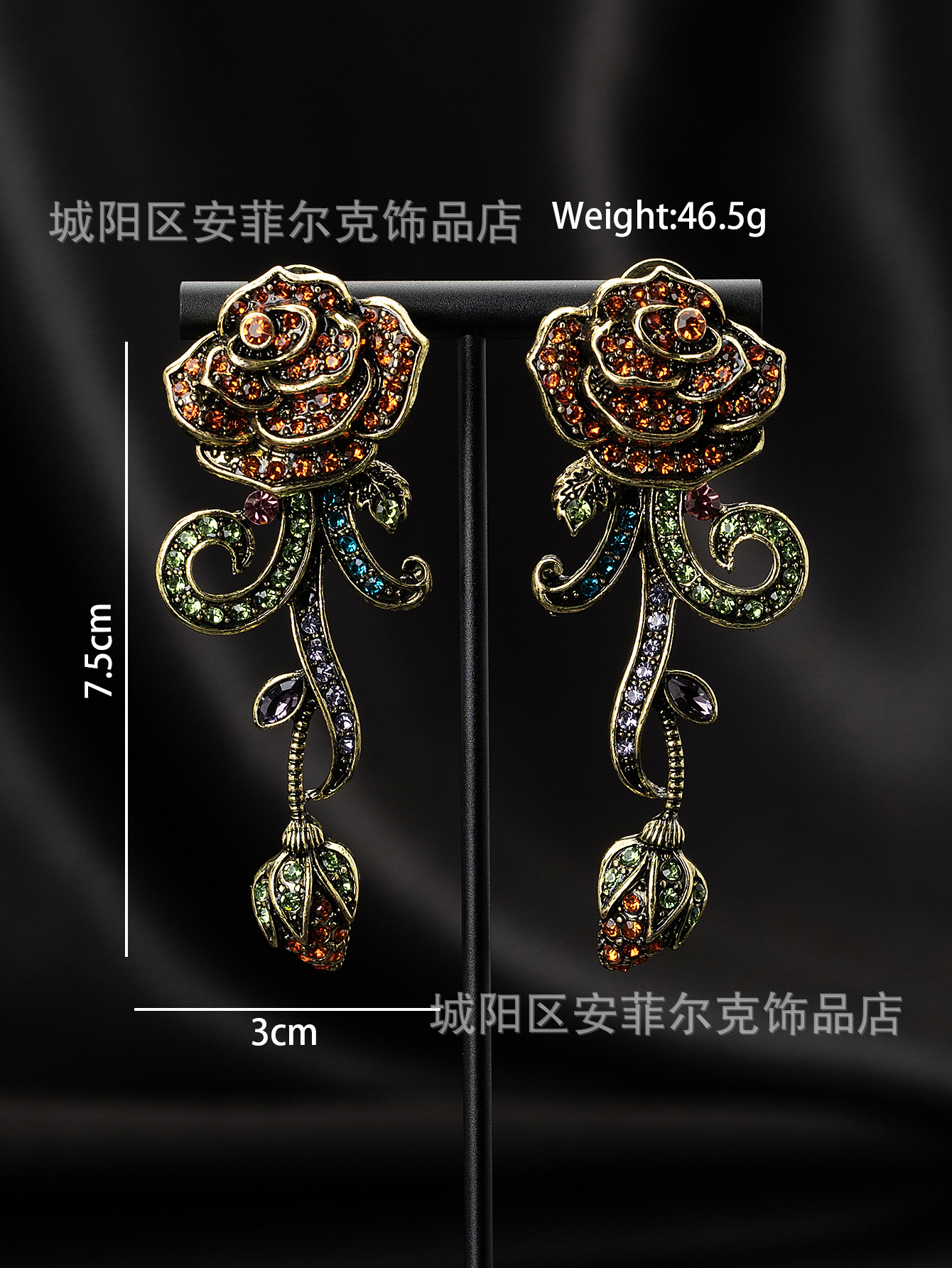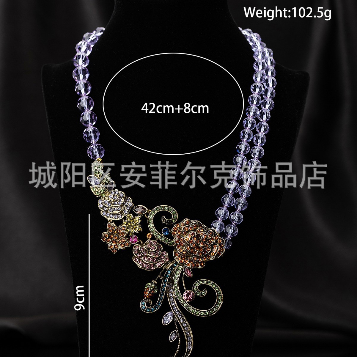 Qingdao Vintage Set of European and American Retro Full Diamond Red Gemstone Earrings, Elegant and Luxurious Rose Necklace and Earrings Set