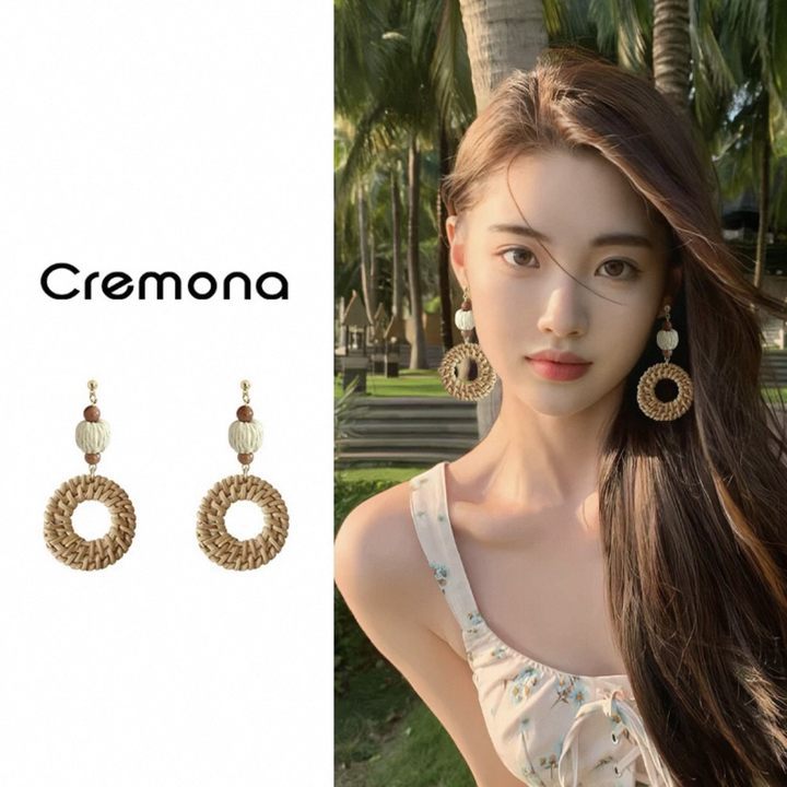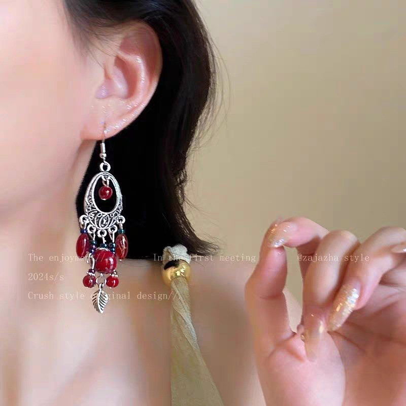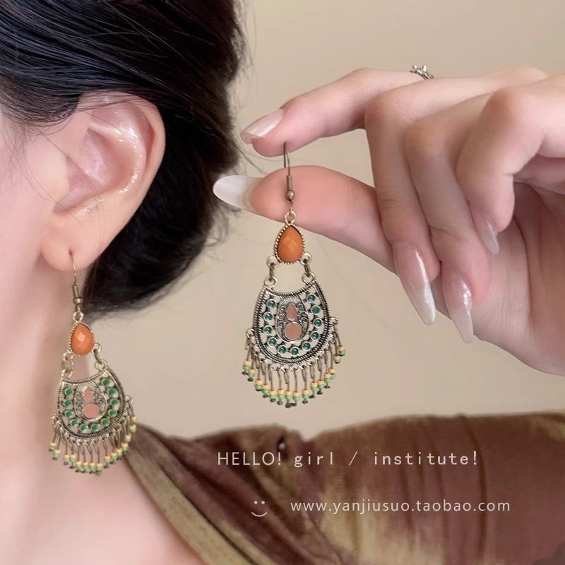 Color: 1#Blue turquoise beaded tassel ear hooks