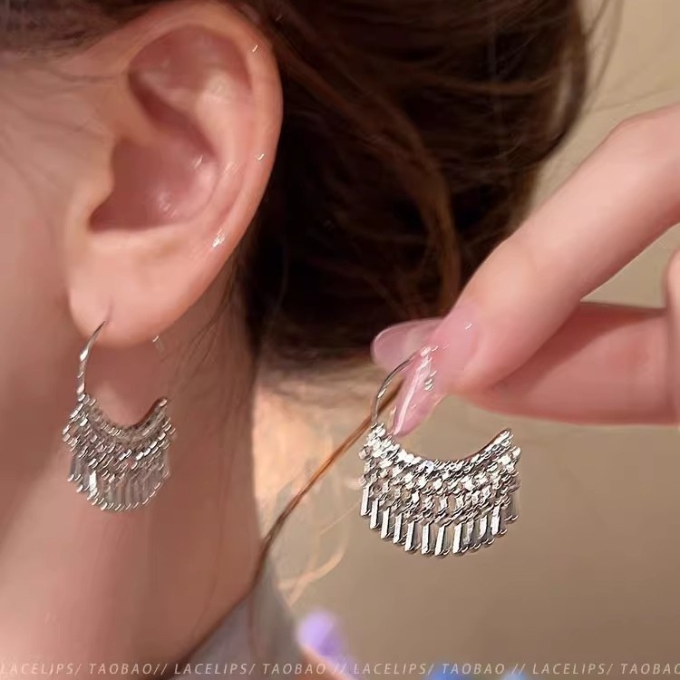 Color: 15#Scalloped glaze beaded tassel ear hooks