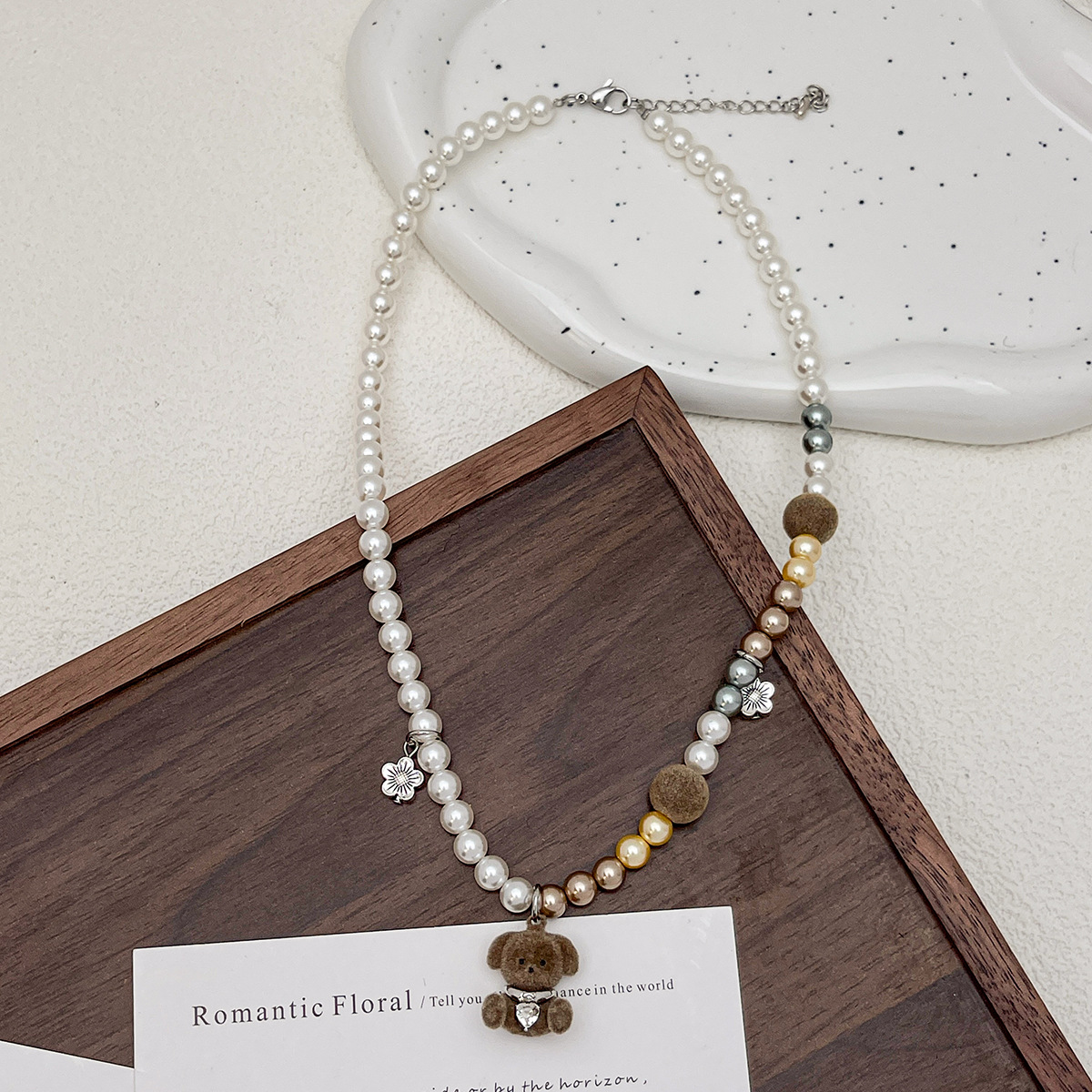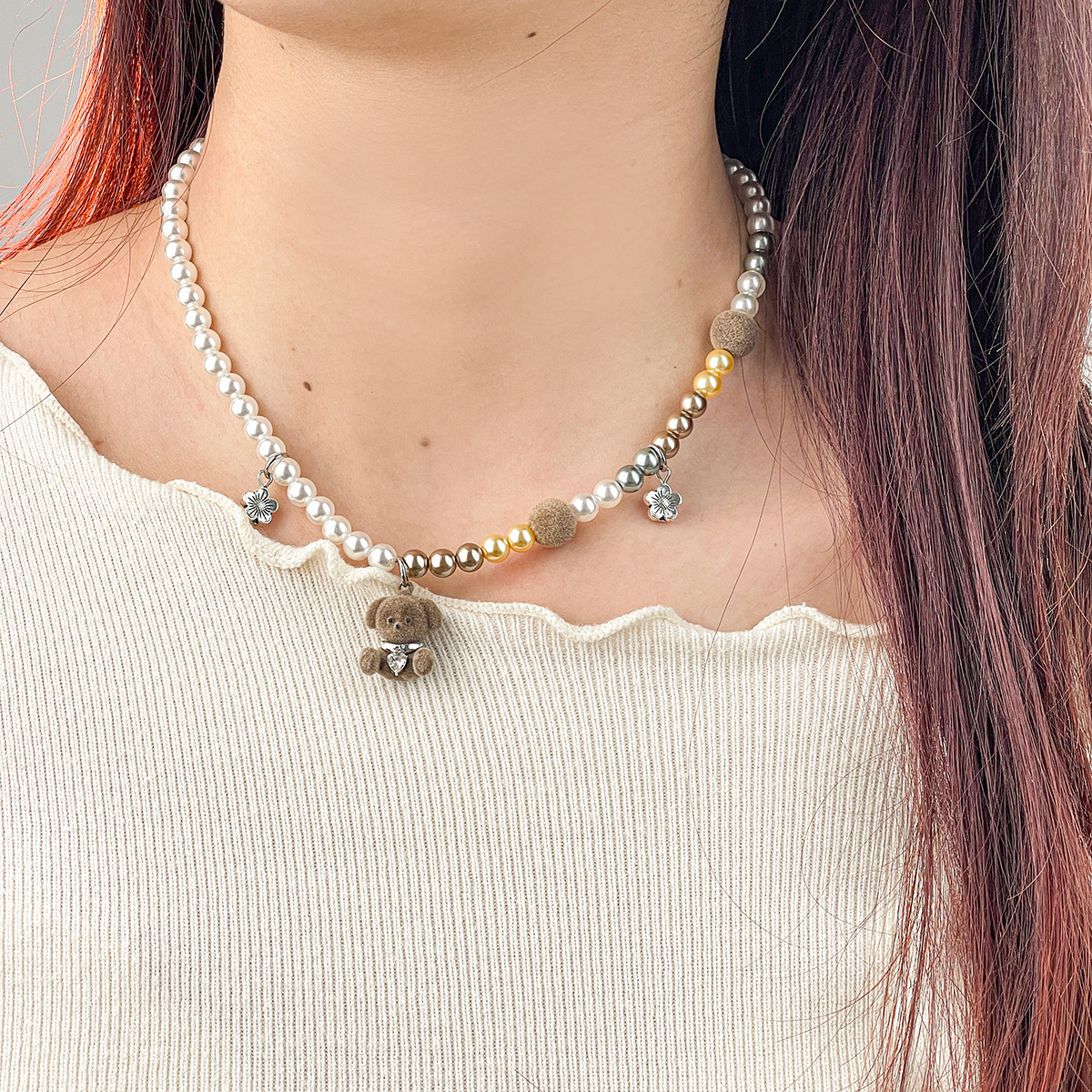 Autumn and Winter Dog Pendant Necklace for Women, Trendy Cute Versatile Sweater Chain, Long Cartoon Sweatshirt Chain Accessory, Pearl Necklace
