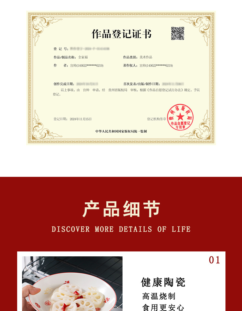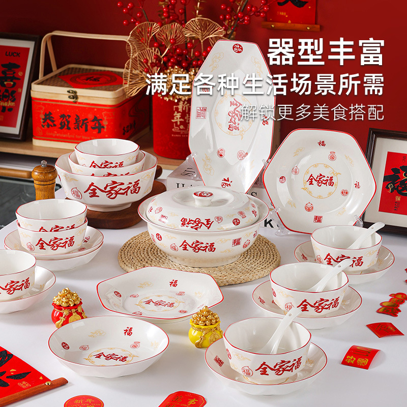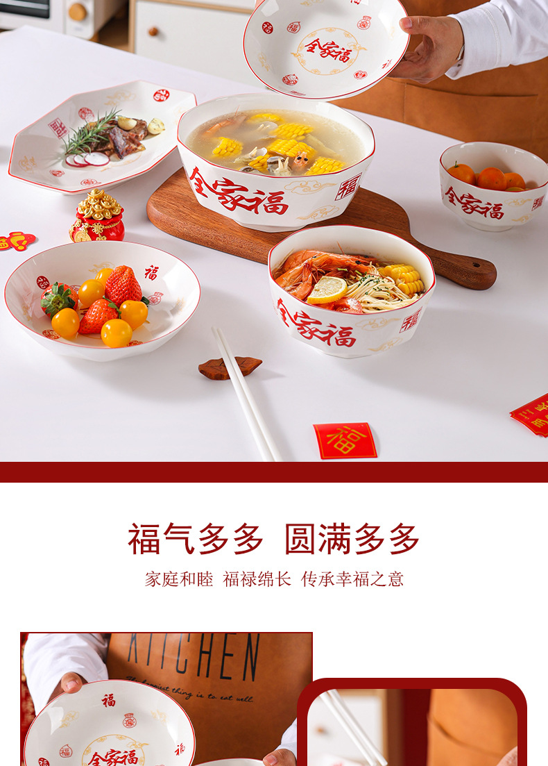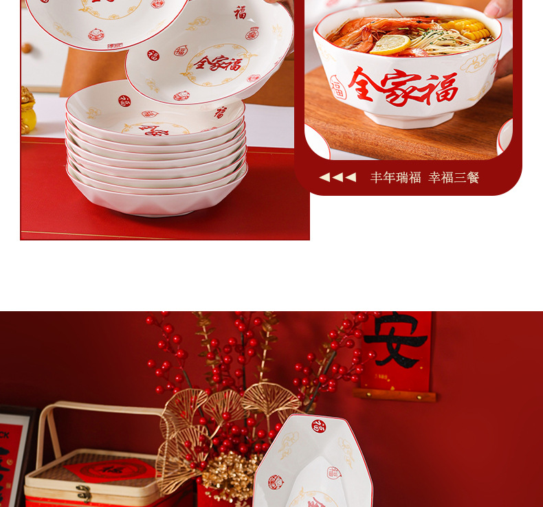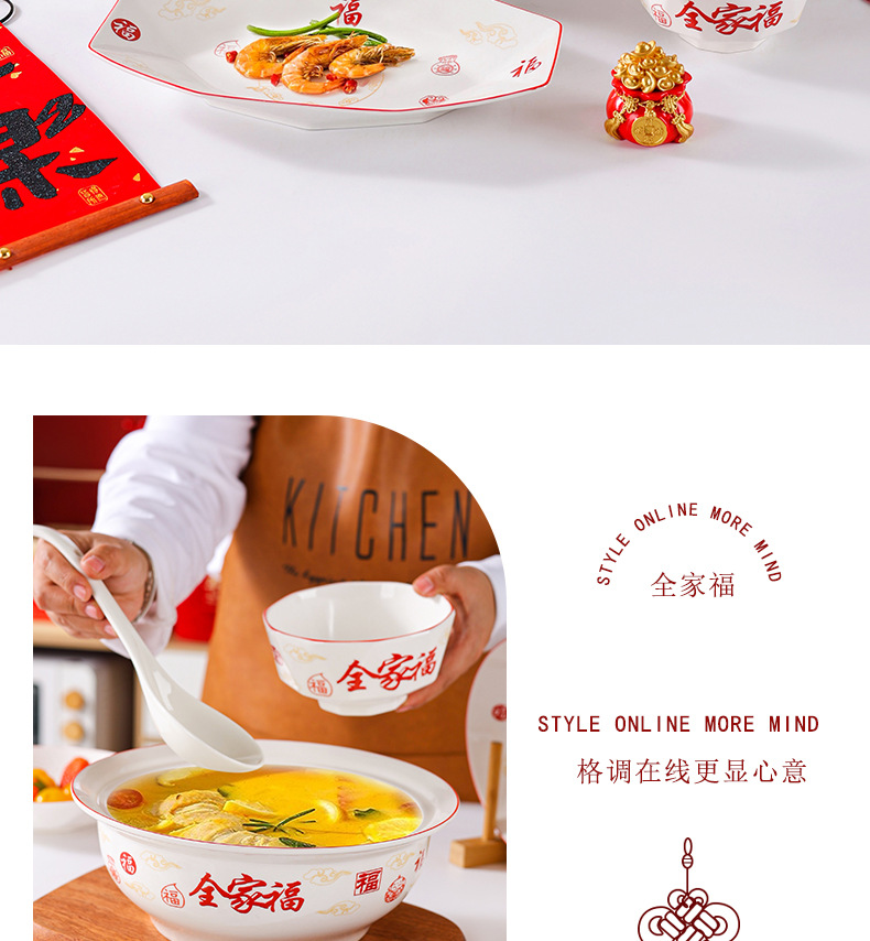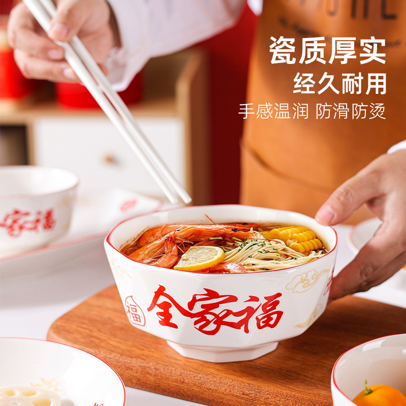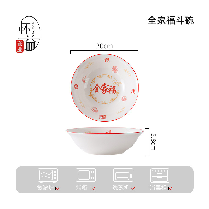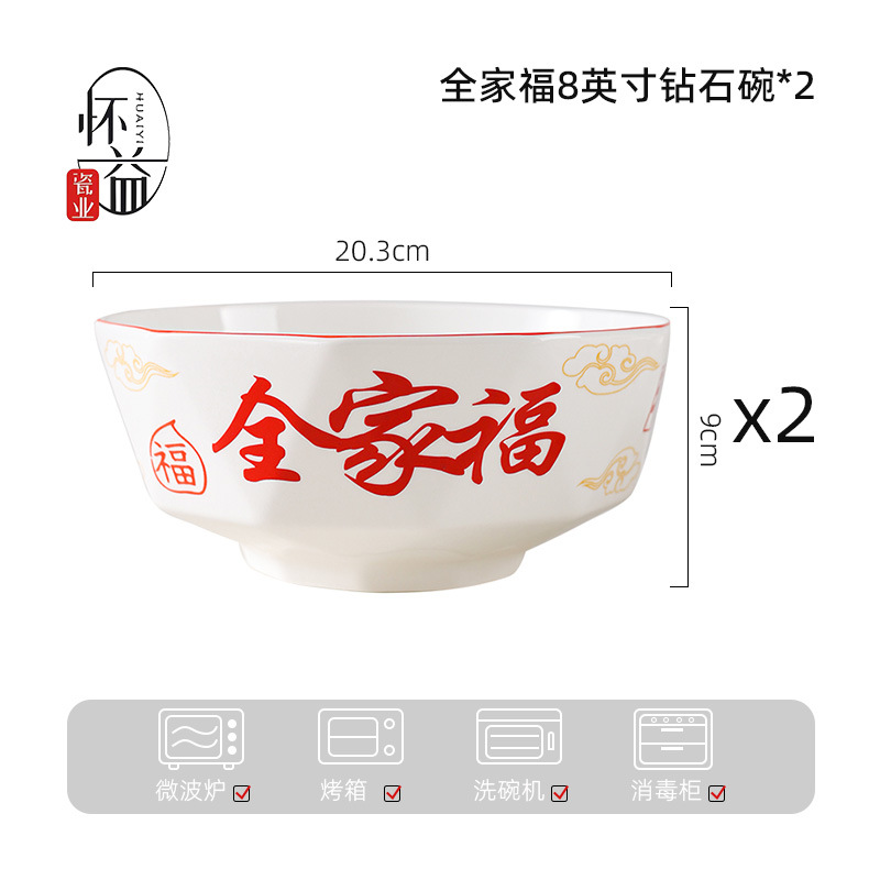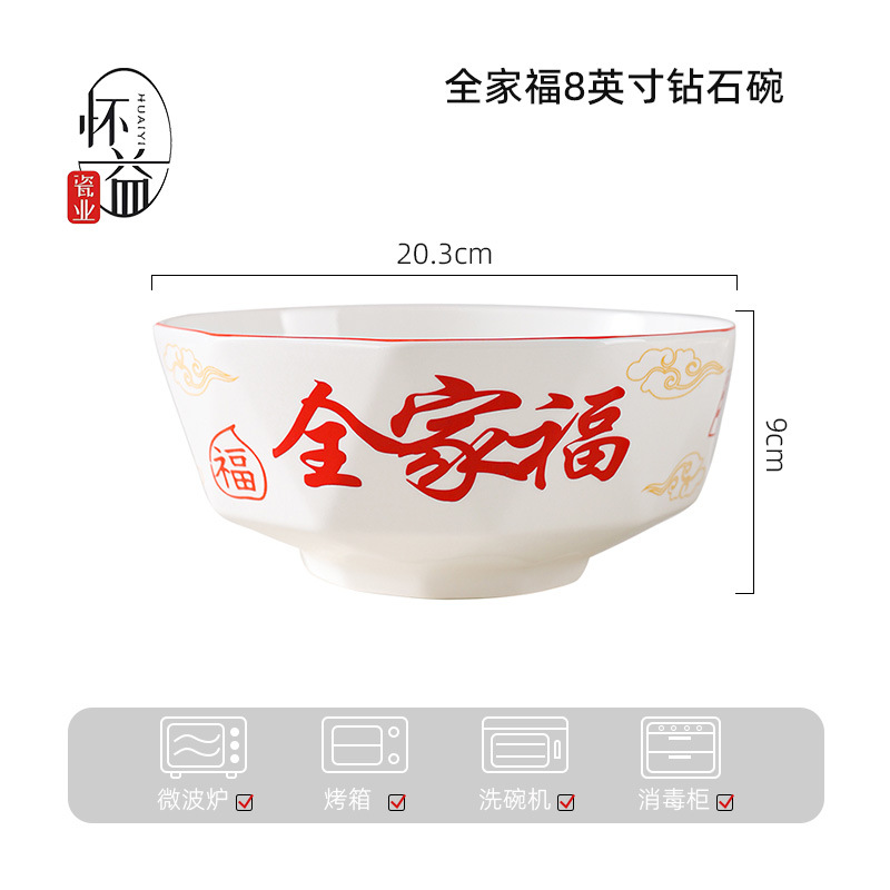 Color: Family portrait 9.25inch double-ear soup bowl [1 piece] (40 pieces/box)
