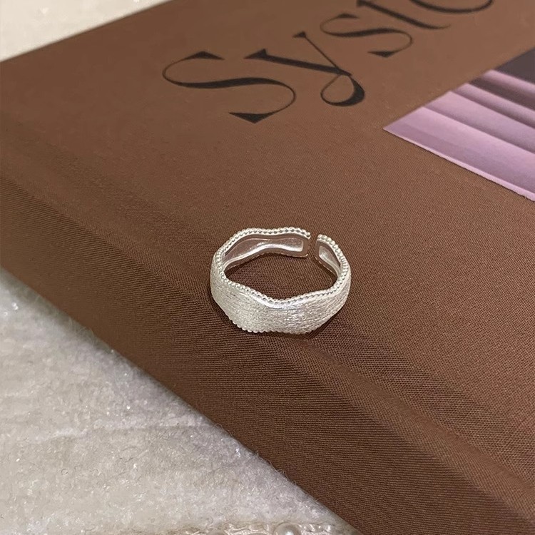 Japanese and Korean style niche high-end design jewelry S925 sterling silver with drawing beads edge ring women's versatile exquisite