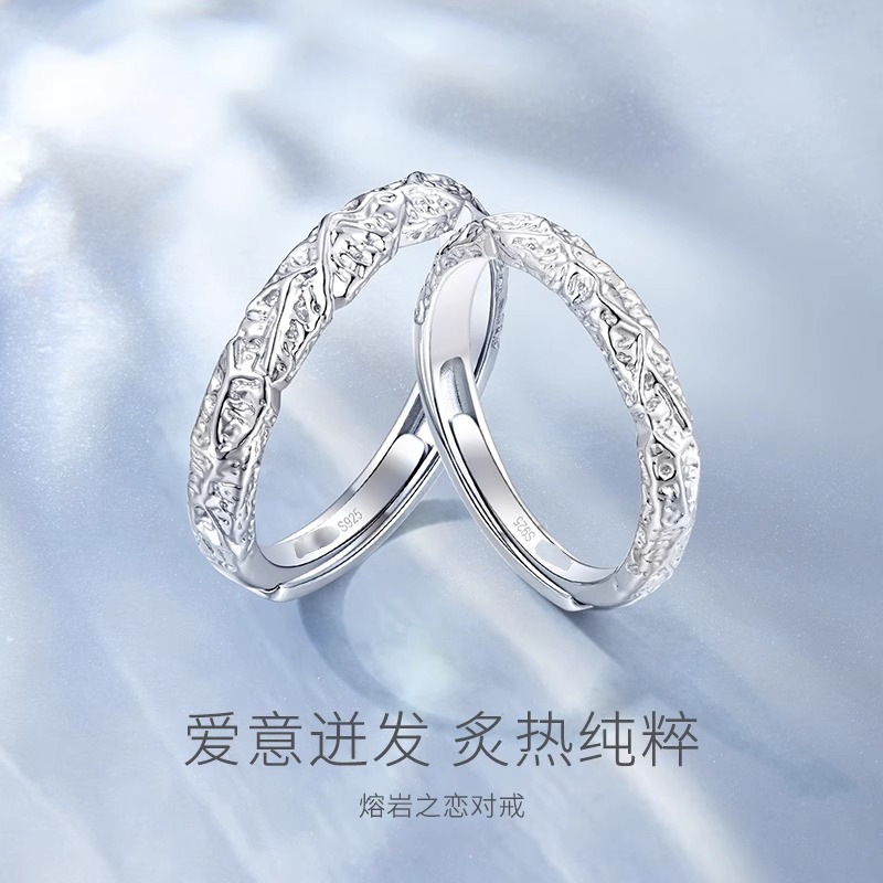S925 Sterling Silver Lava Love Couple Ring for Men and Women, Accessible Luxury Niche Design, Simple Ring for Boyfriend and Girlfriend