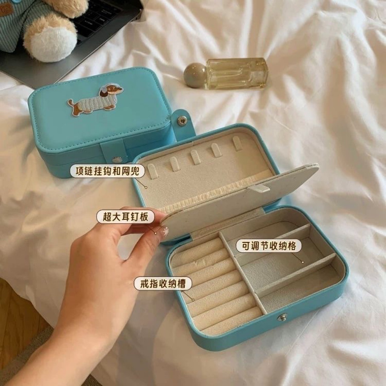Dachshund Cartoon Ins Style Cute Embroidered Large Capacity Earrings Necklace Jewelry Storage Box Jewelry Storage Box