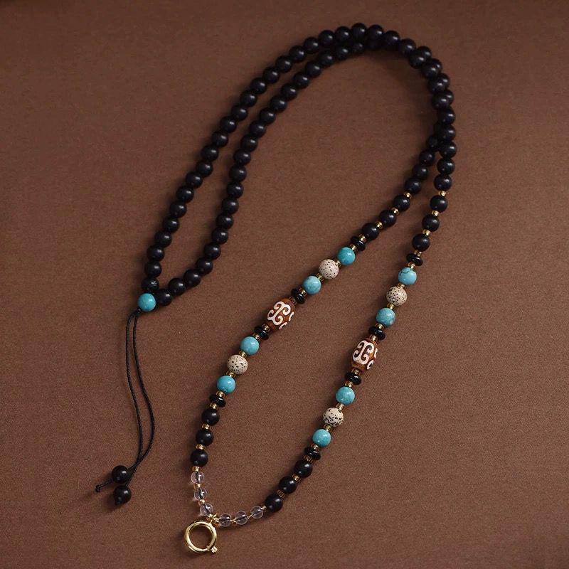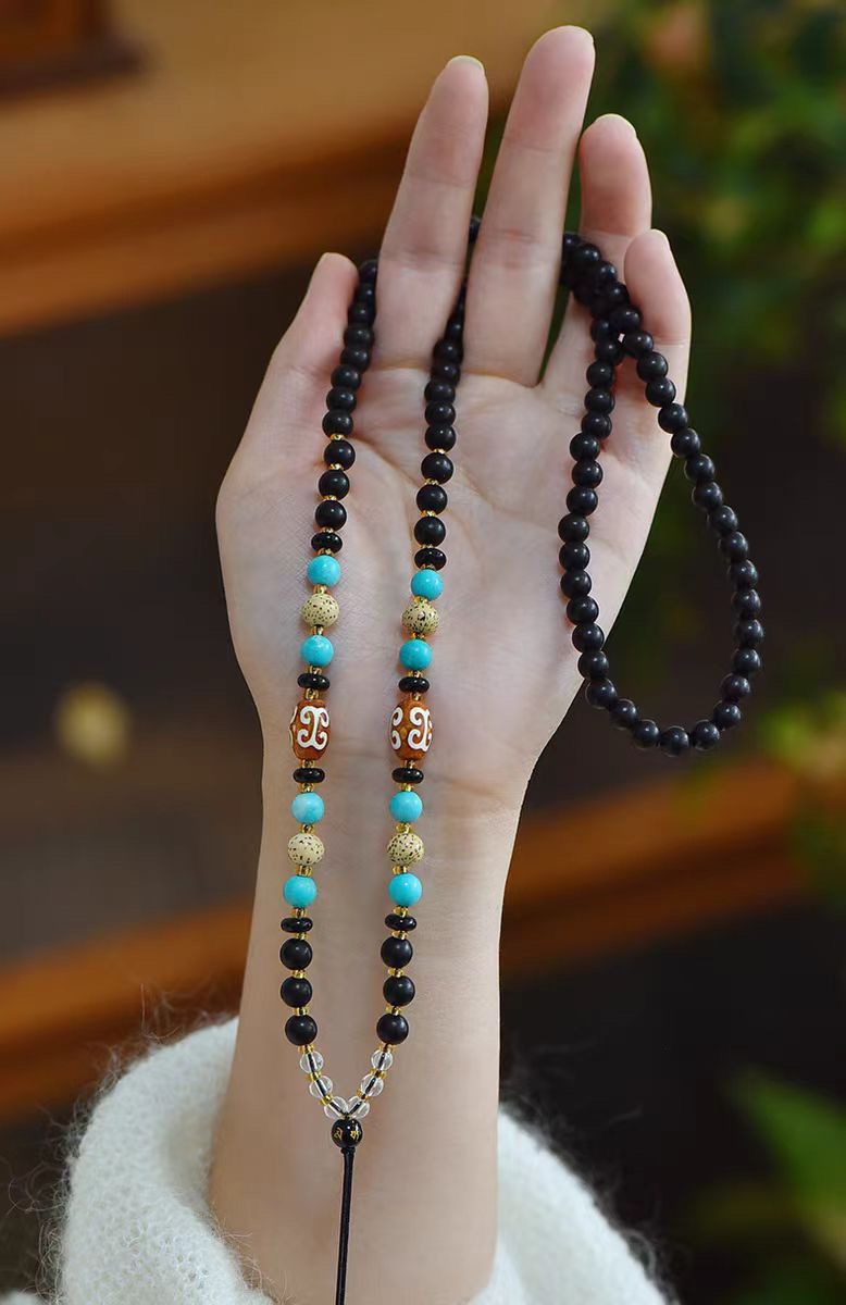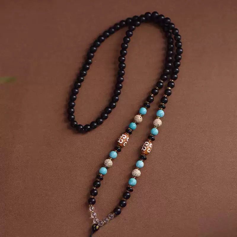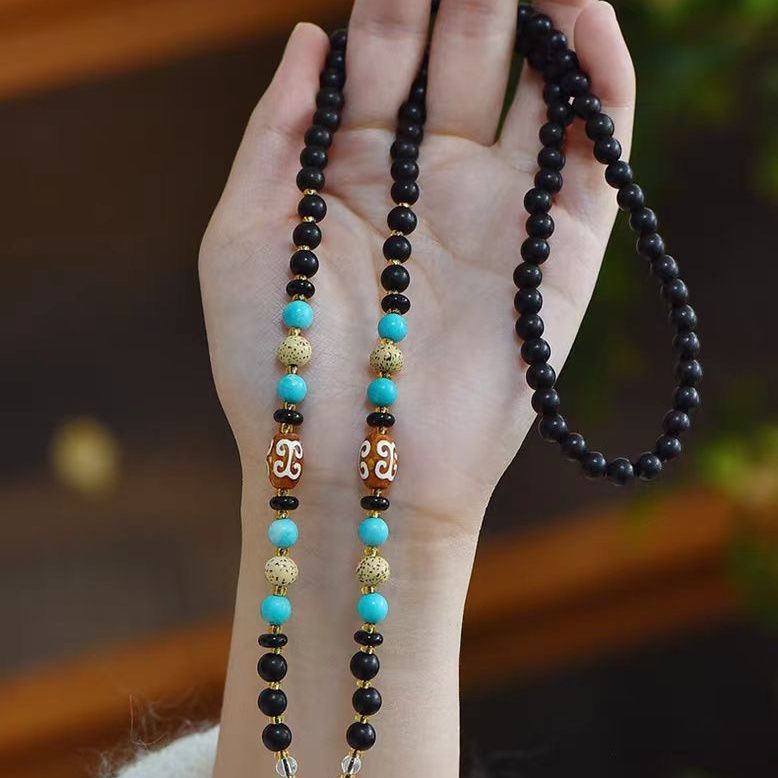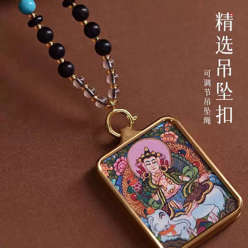 Natural Ebony Buddha Amulet Necklace, Thangka Pendant with Rope Hanging Chain, Toy Pendant Chain Rope