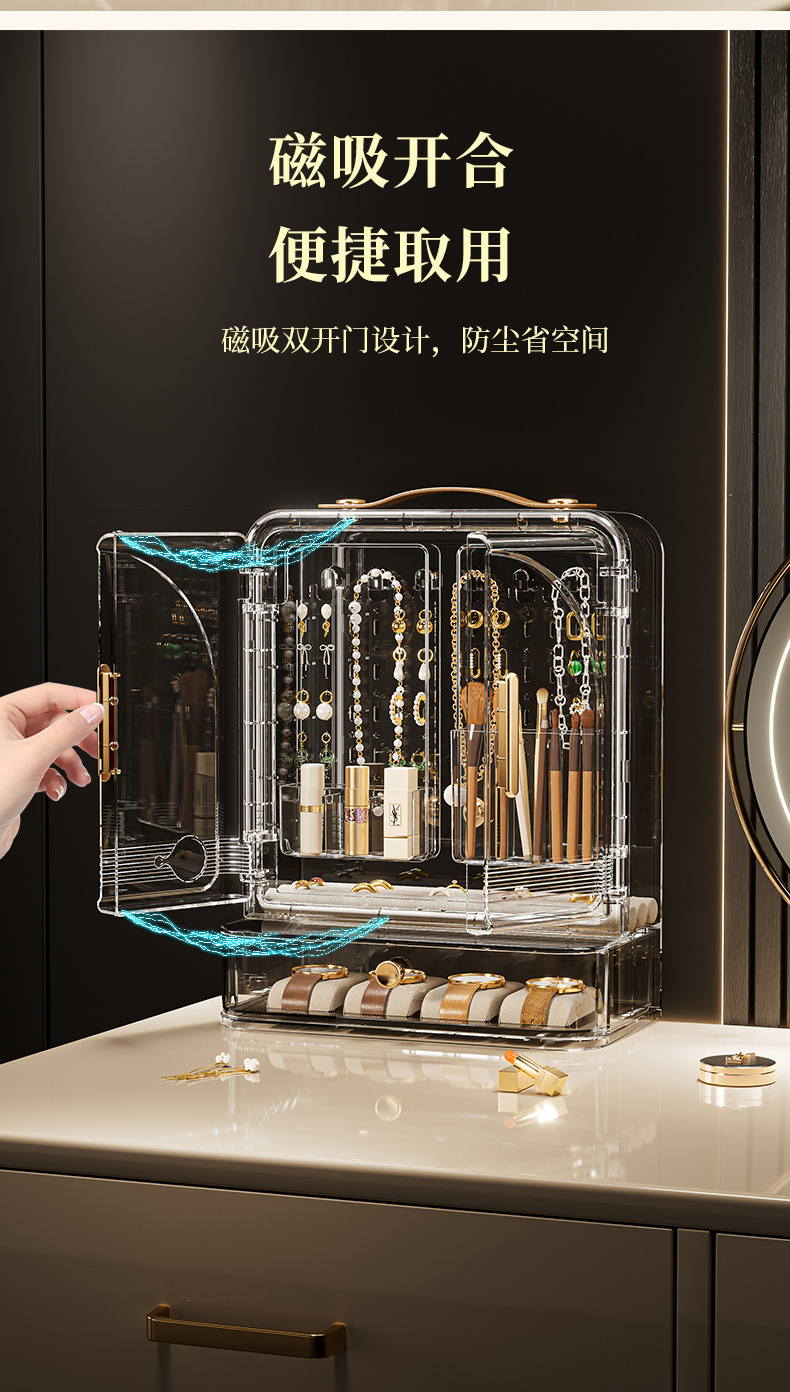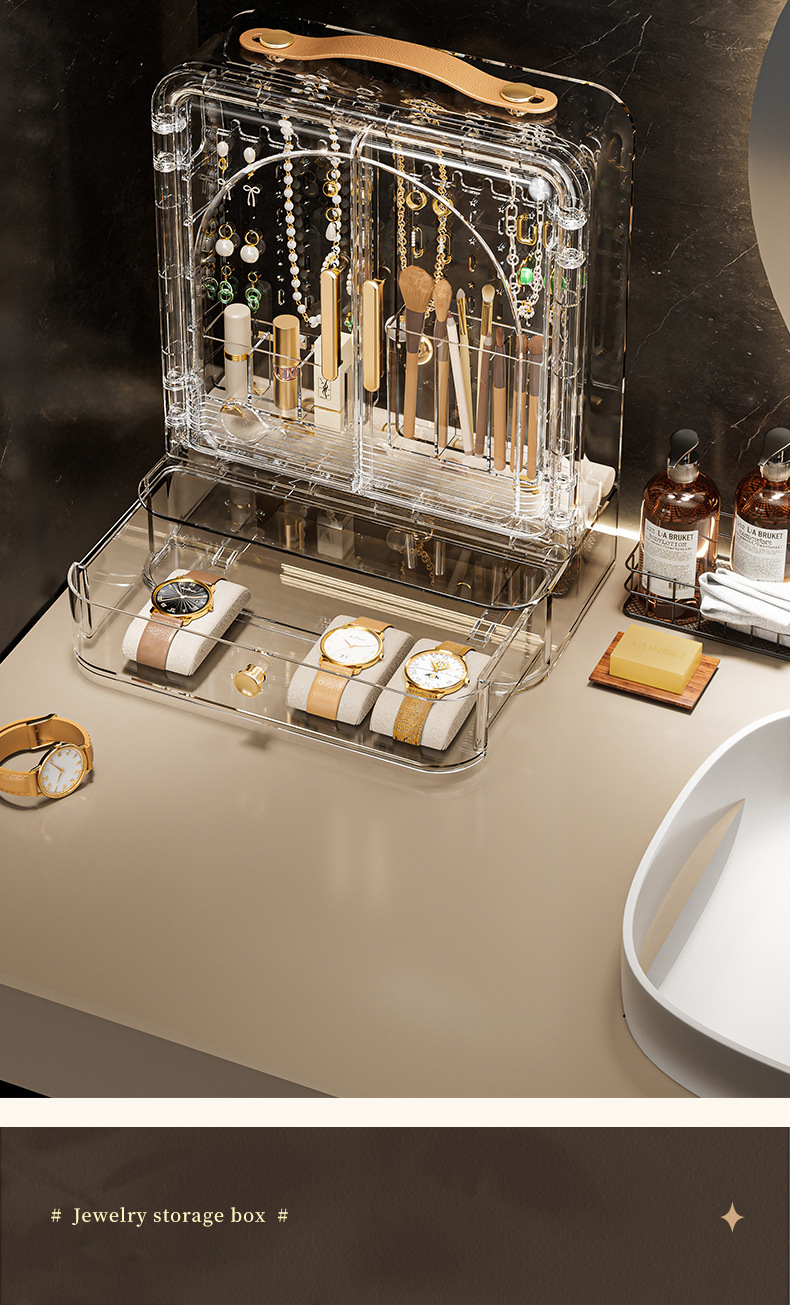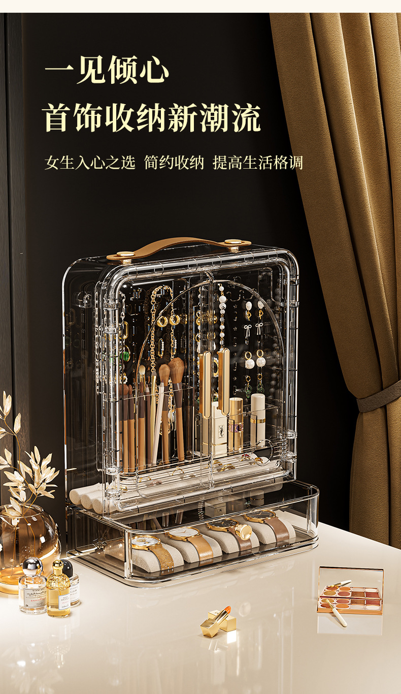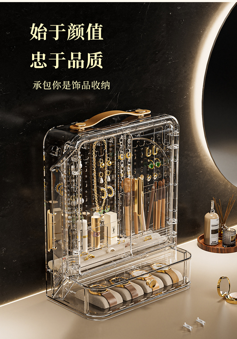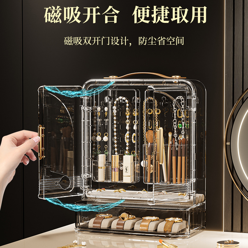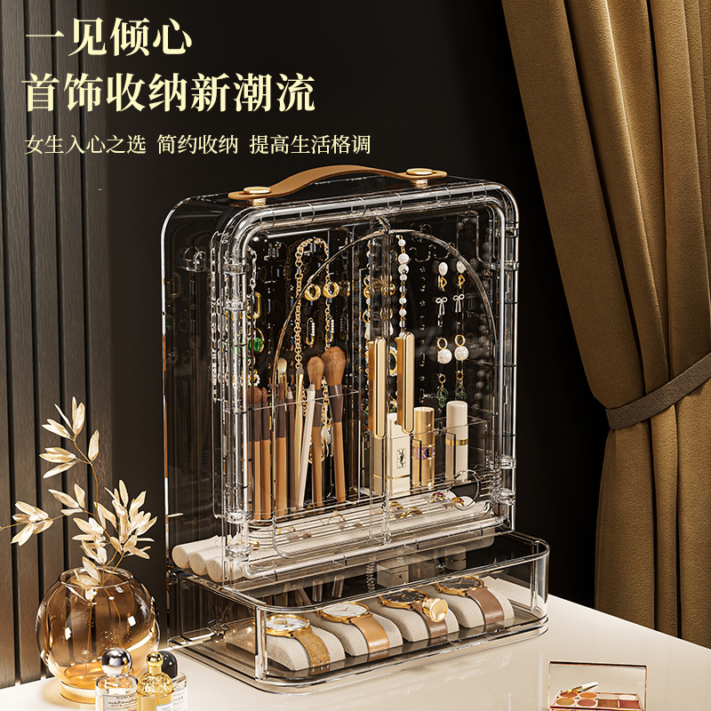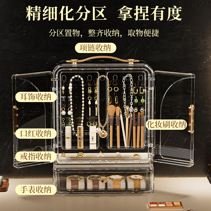 Jewelry Storage Box, High-End, Portable, Large-Capacity Earrings, Rings, Household Makeup Brushes, Lipstick Storage Racks, Jewelry