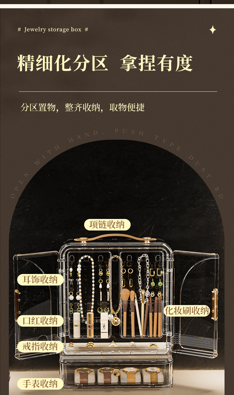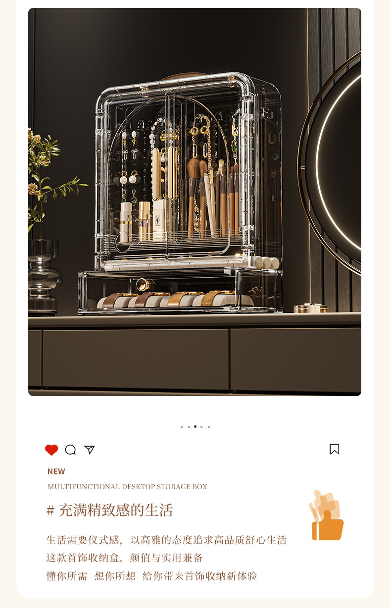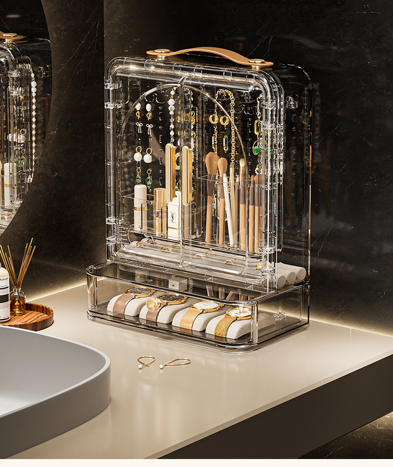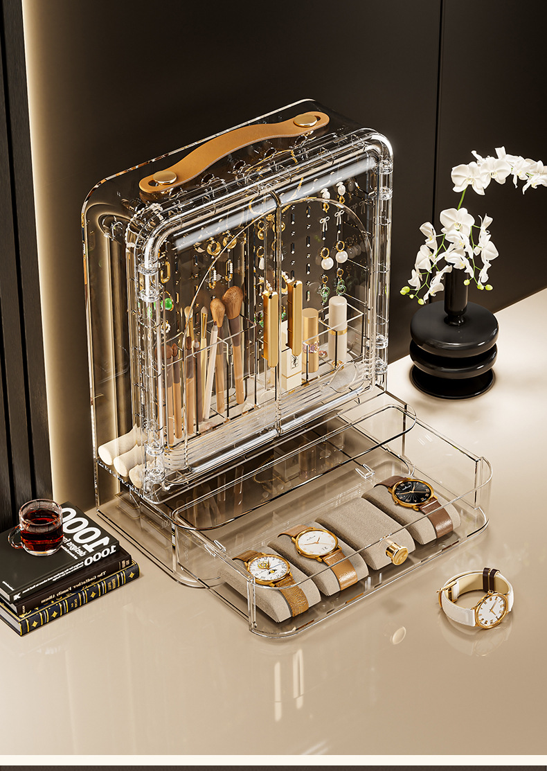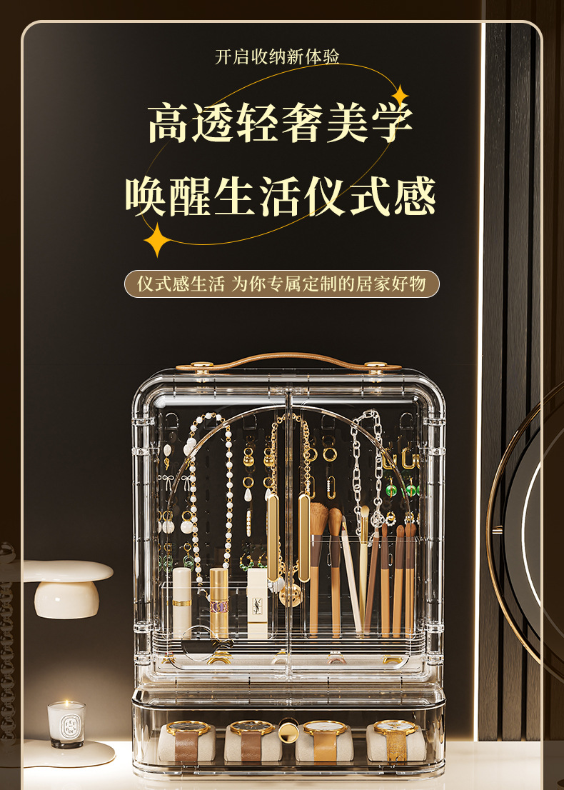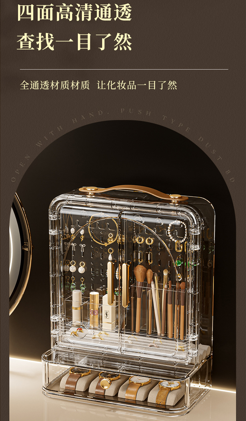 Jewelry Storage Box, High-End, Portable, Large-Capacity Earrings, Rings, Household Makeup Brushes, Lipstick Storage Racks, Jewelry