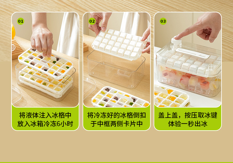 Press Ice Cube Mold Ice Tray Ice Box Household Storage for Making Frozen Ice Cubes Refrigerator Ice Storage Maker Mold Tool