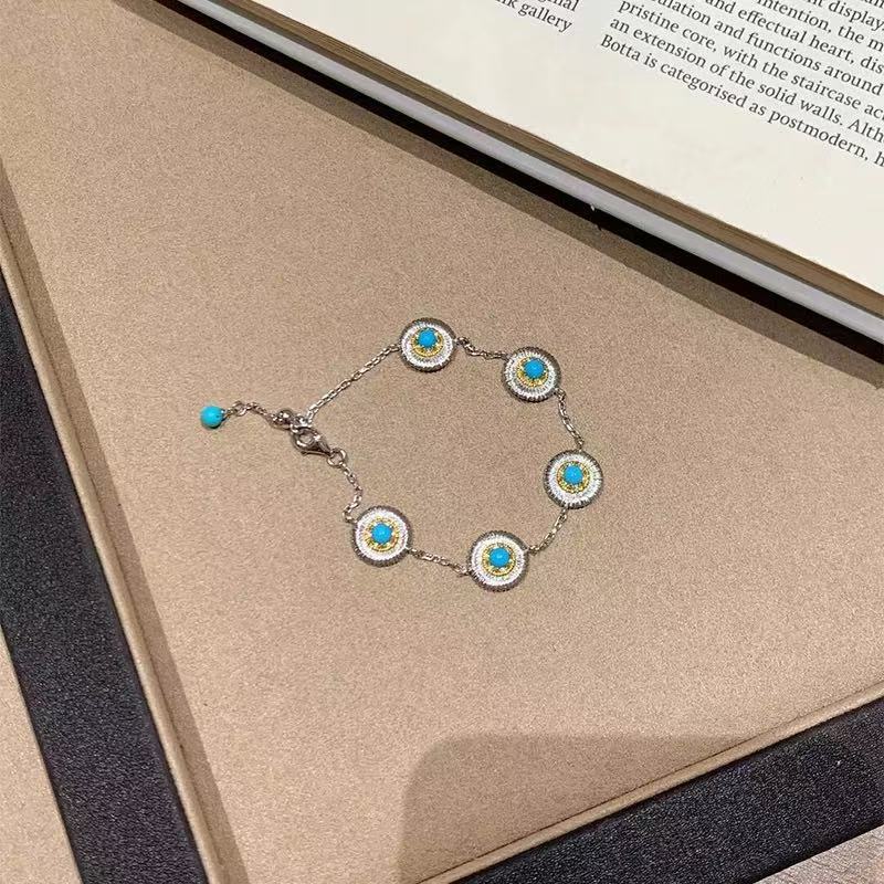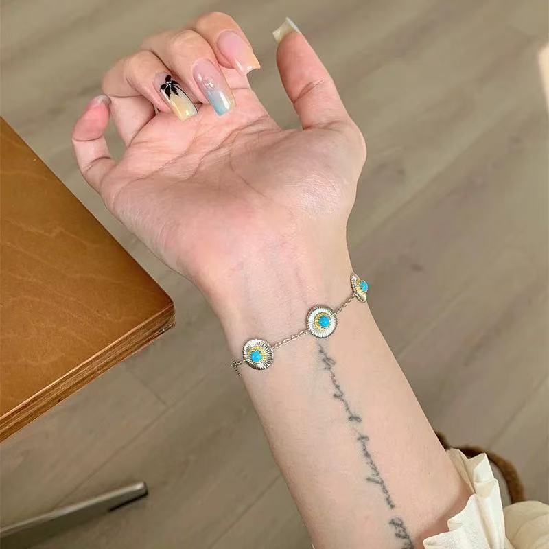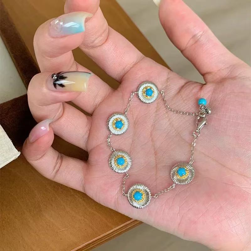Color: Sl-126-brushed blue turquoise daisy bracelet