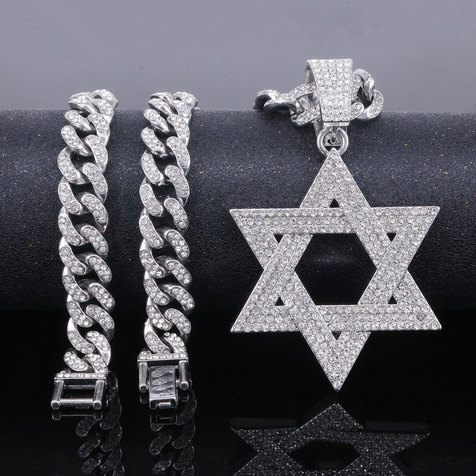 Color: Silver six-pointed star pendant + round chain 50cm (simple buckle)