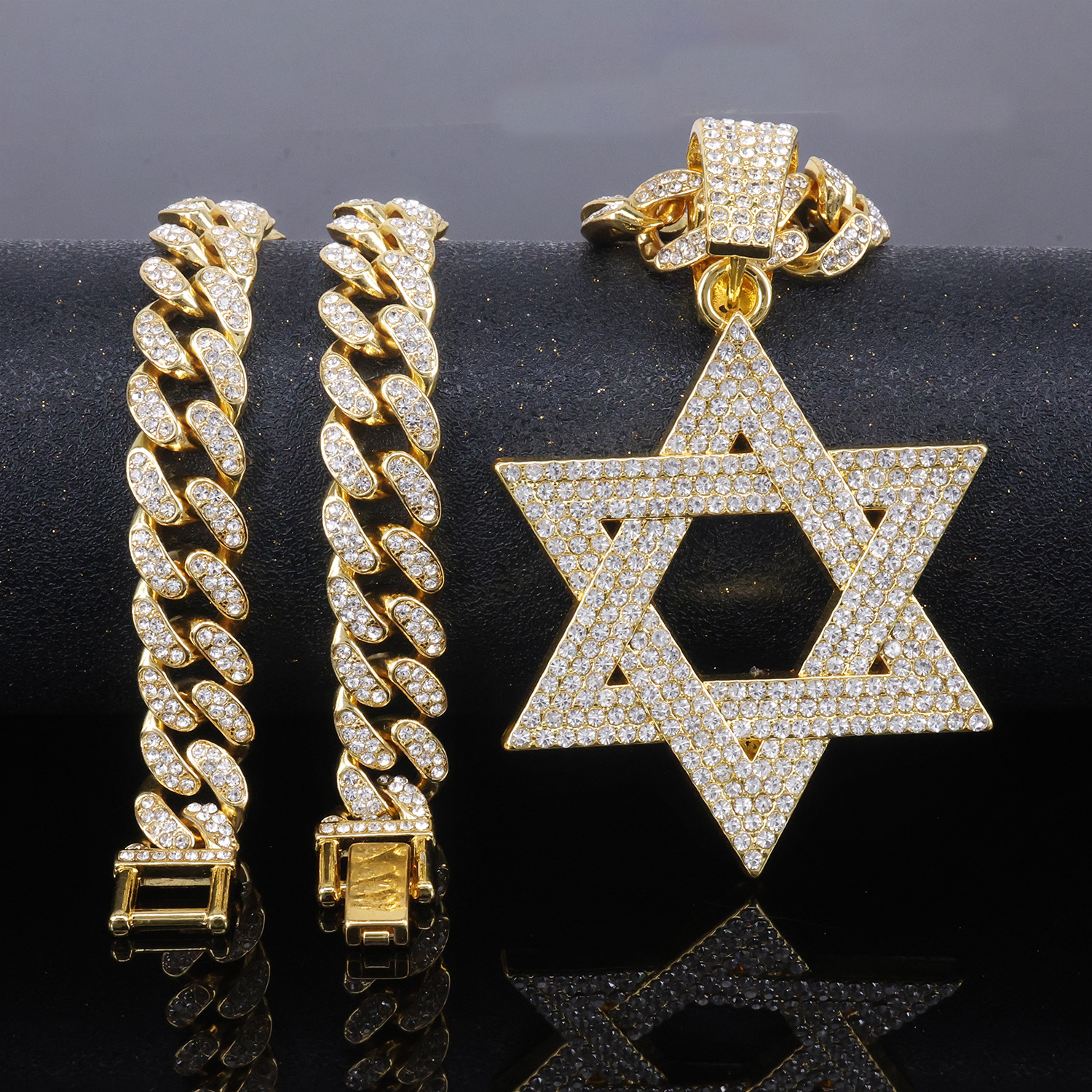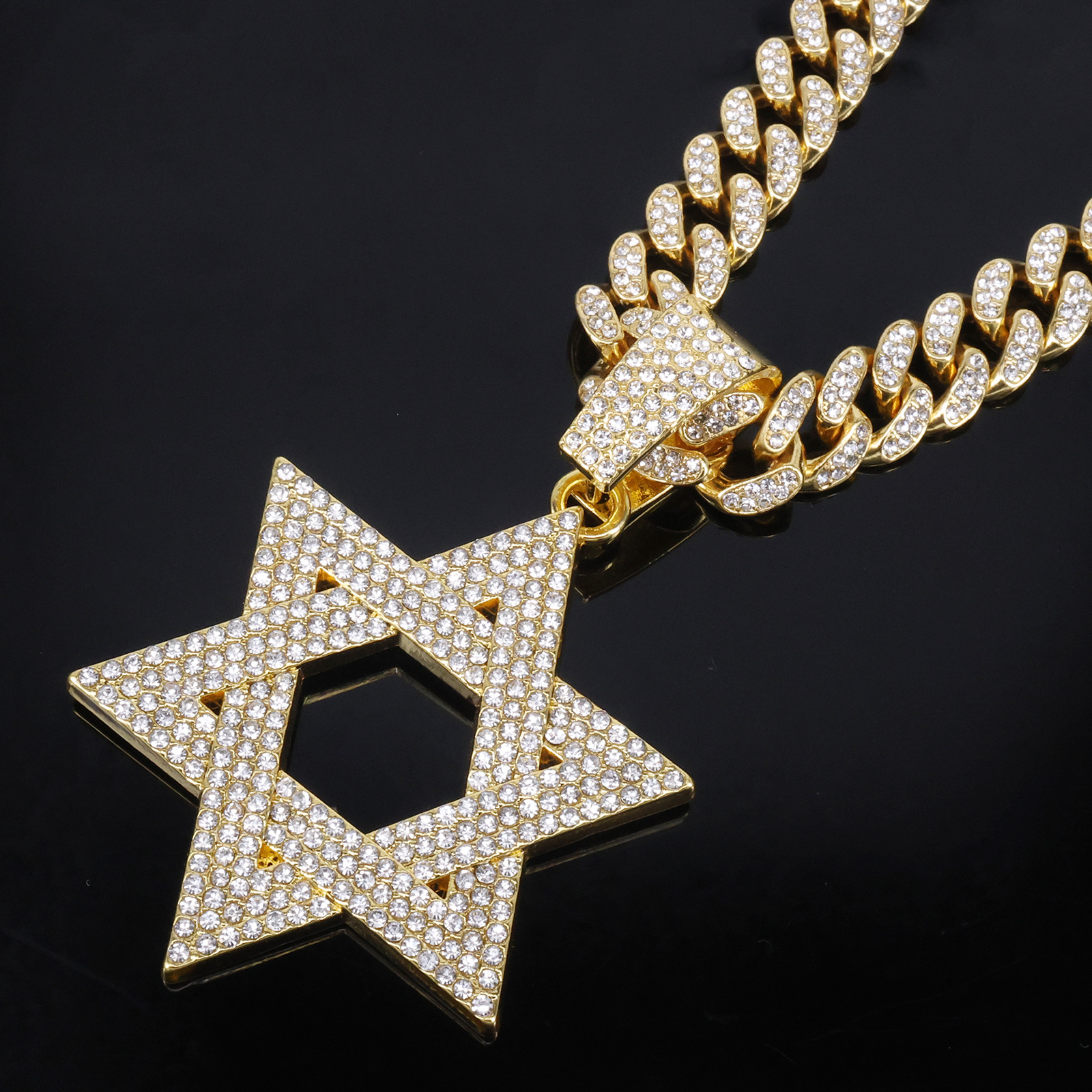 Color: Golden six-pointed star pendant + round chain 50cm (simple buckle)