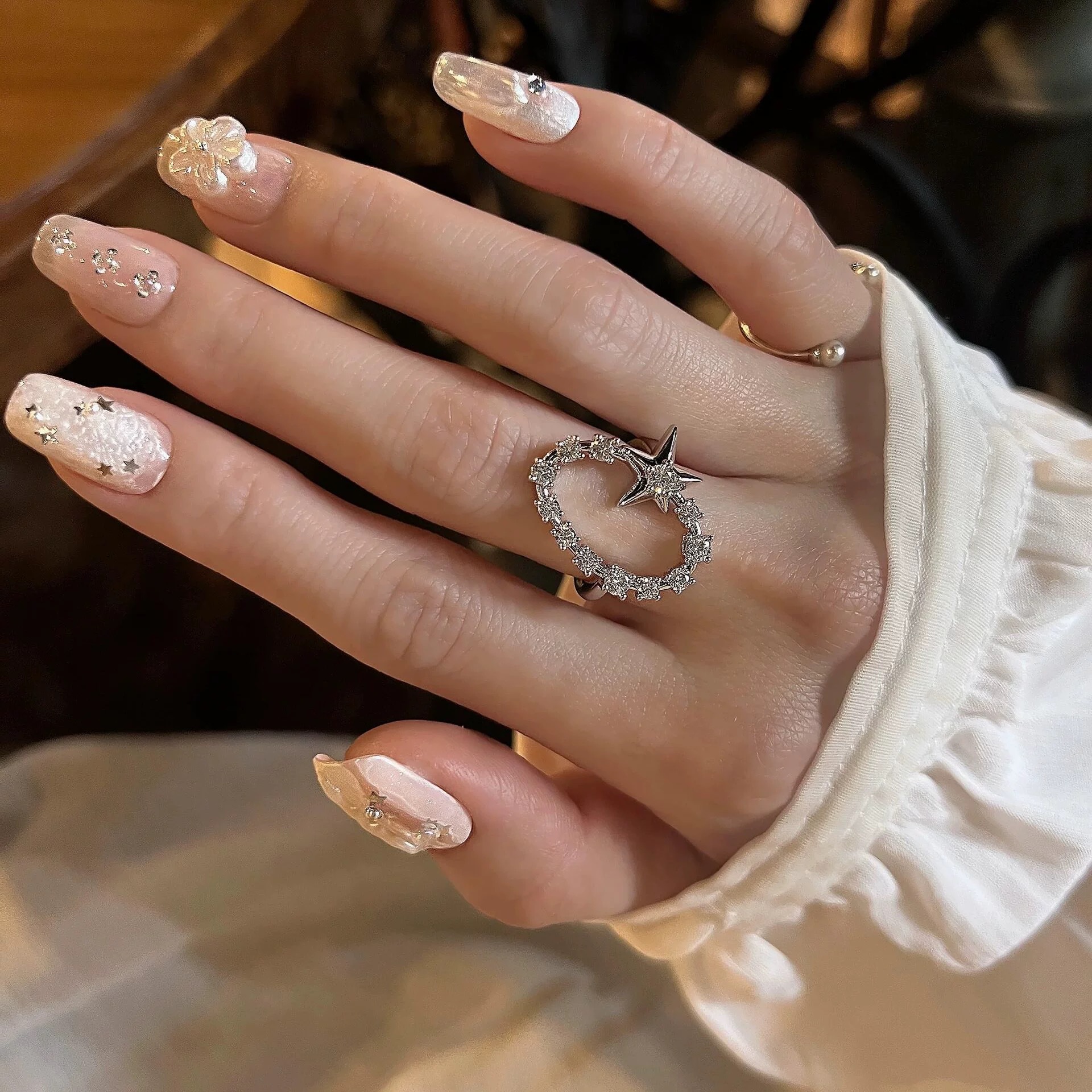 Diamond-Encrusted Accessible Luxury Oval Star Ring for Women Unique and Exquisite Niche Design Ring Index Finger Ring 2025 New Style