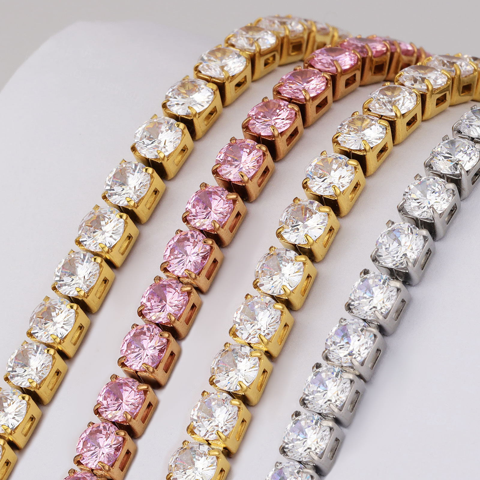 Color: 3mm steel color 17cm tennis pink zircon bracelet