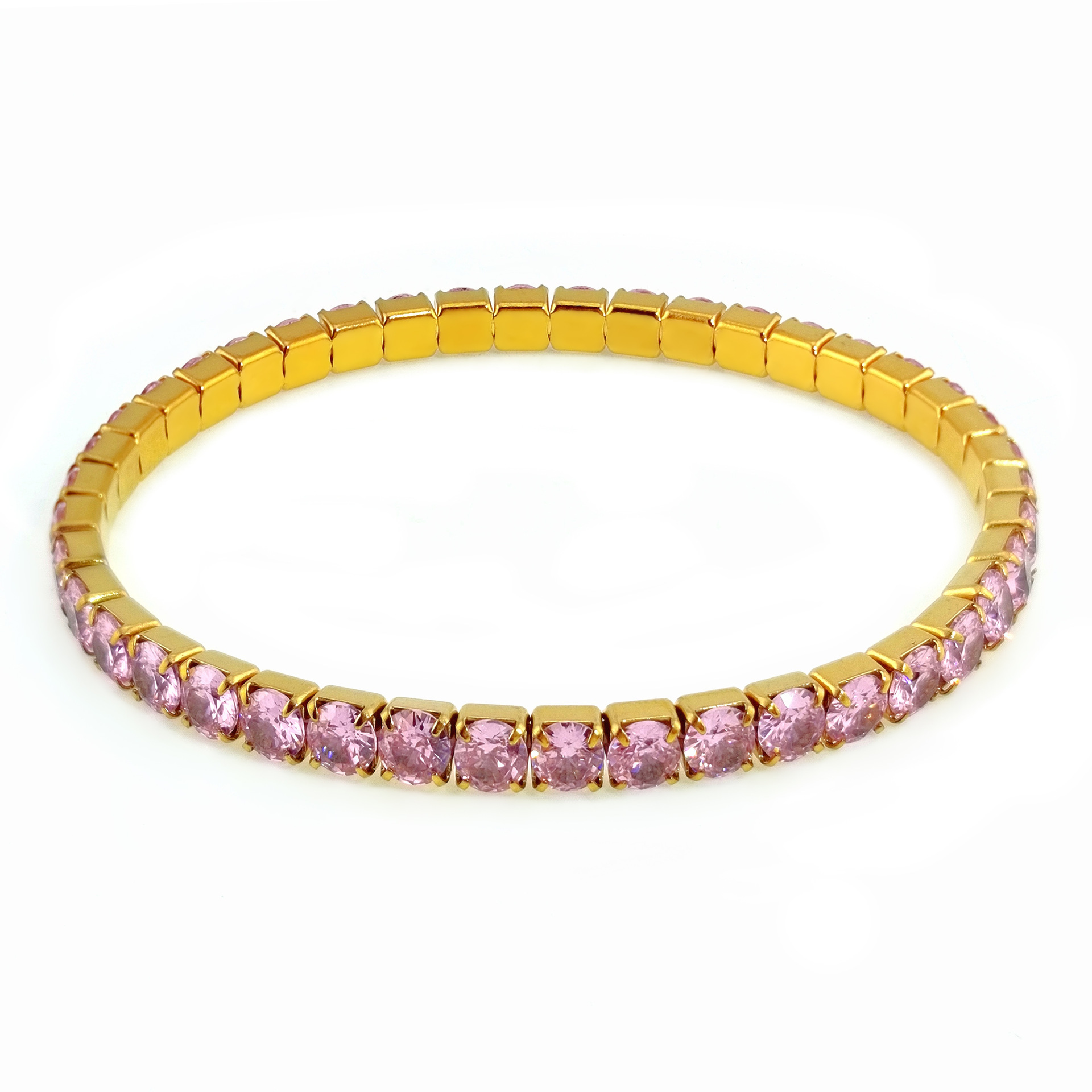 Color: 3mm gold 17cm tennis pink zircon bracelet