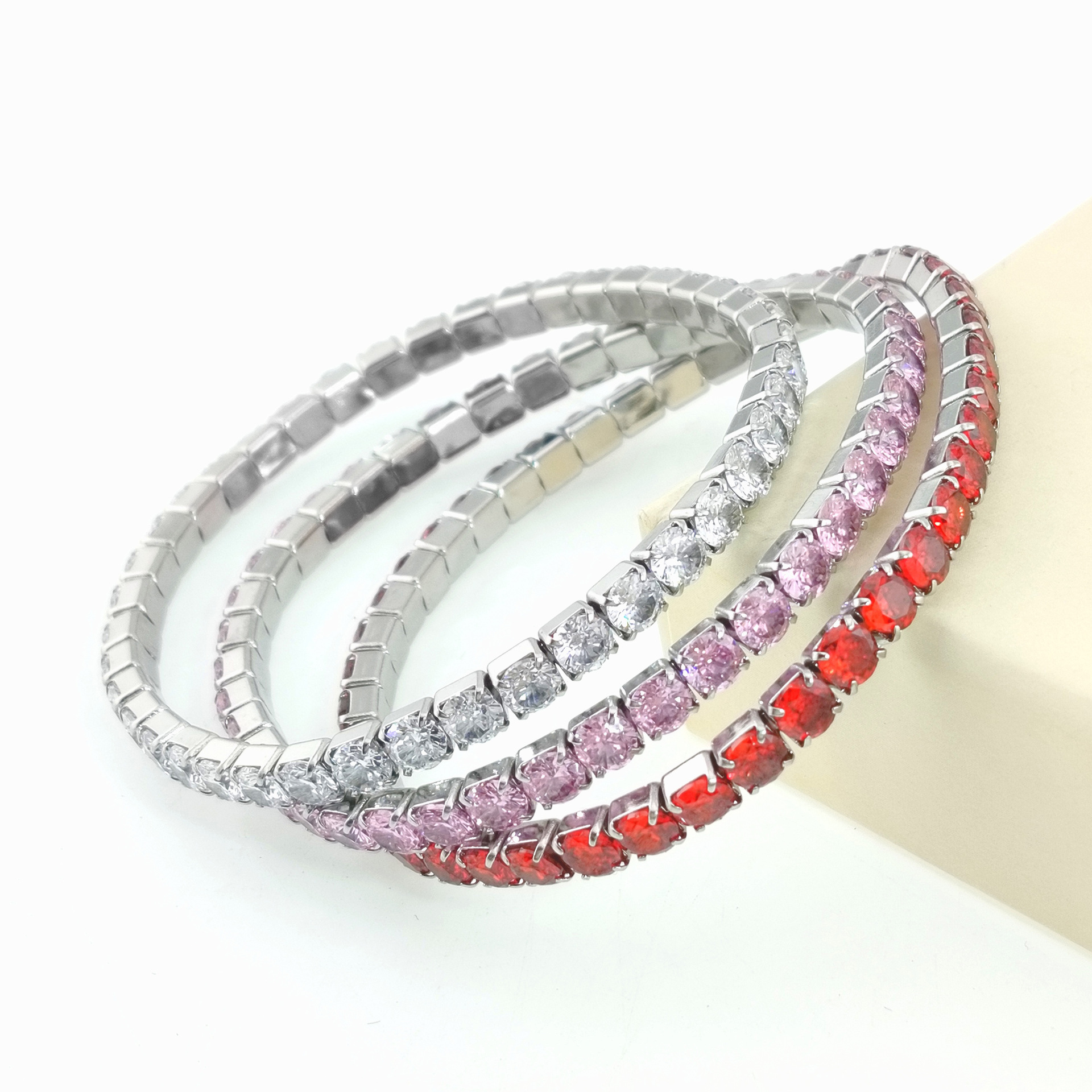 Color: 3mm steel color 17cm tennis red zircon bracelet