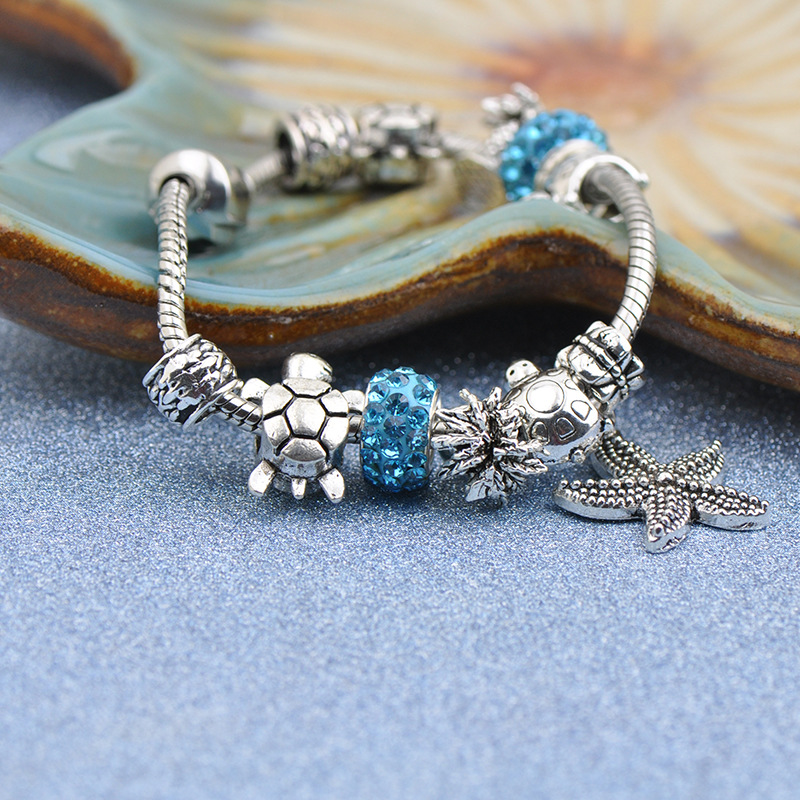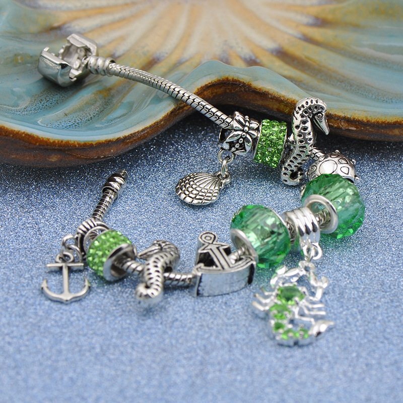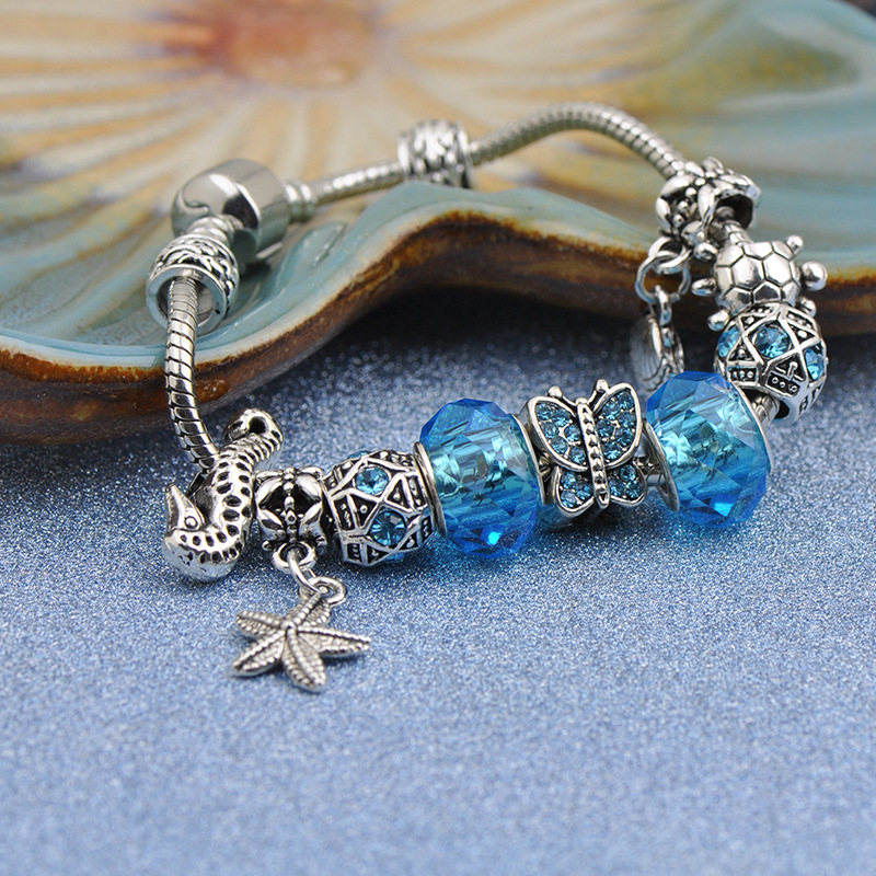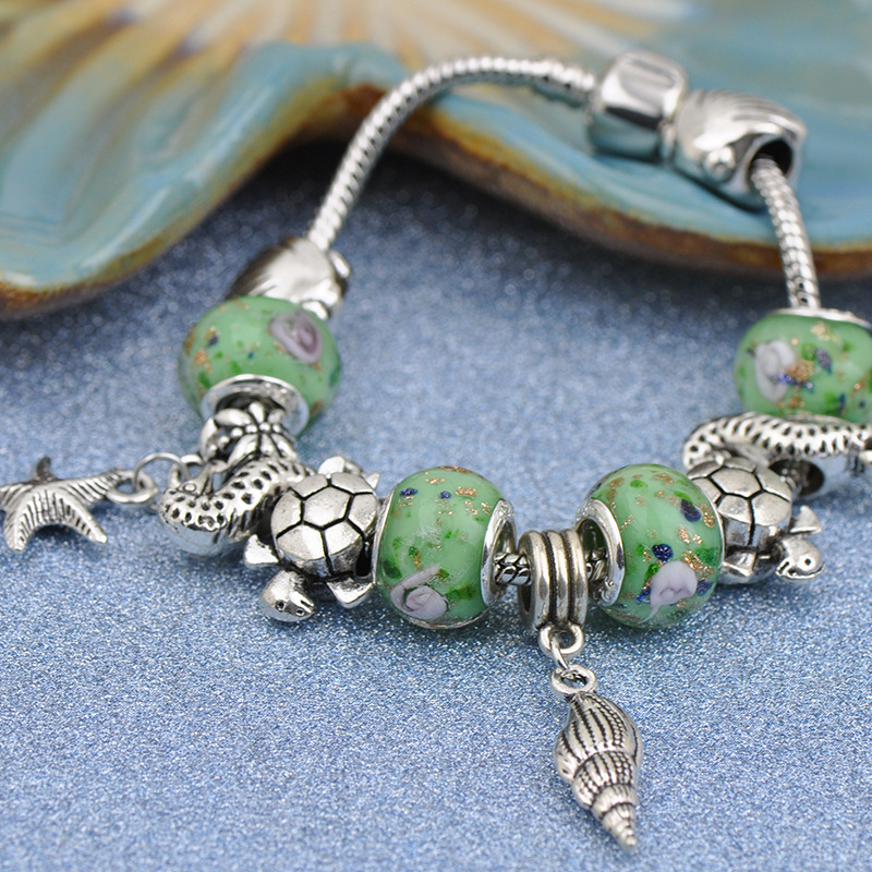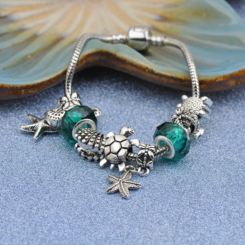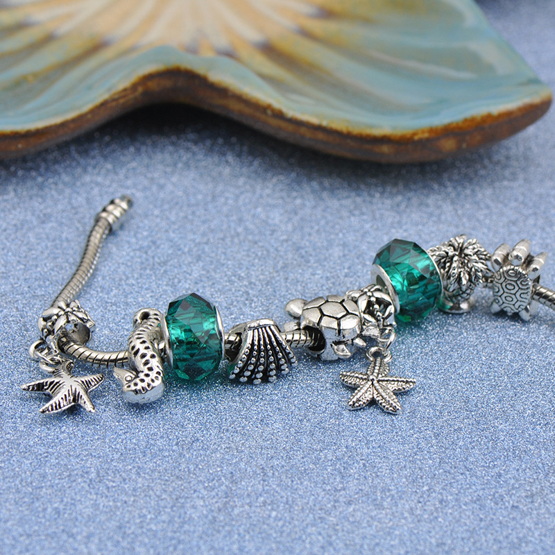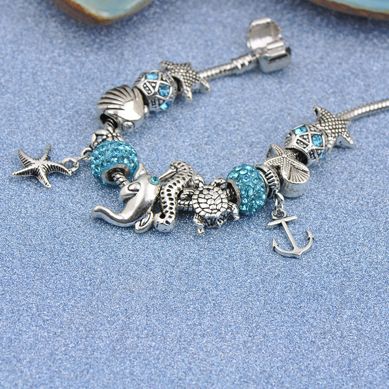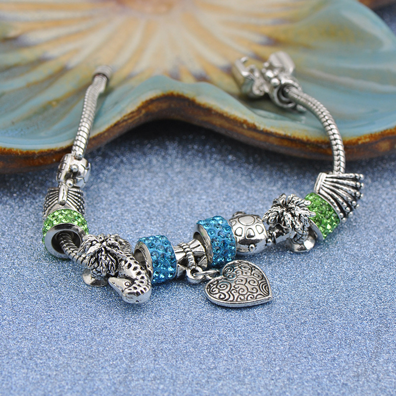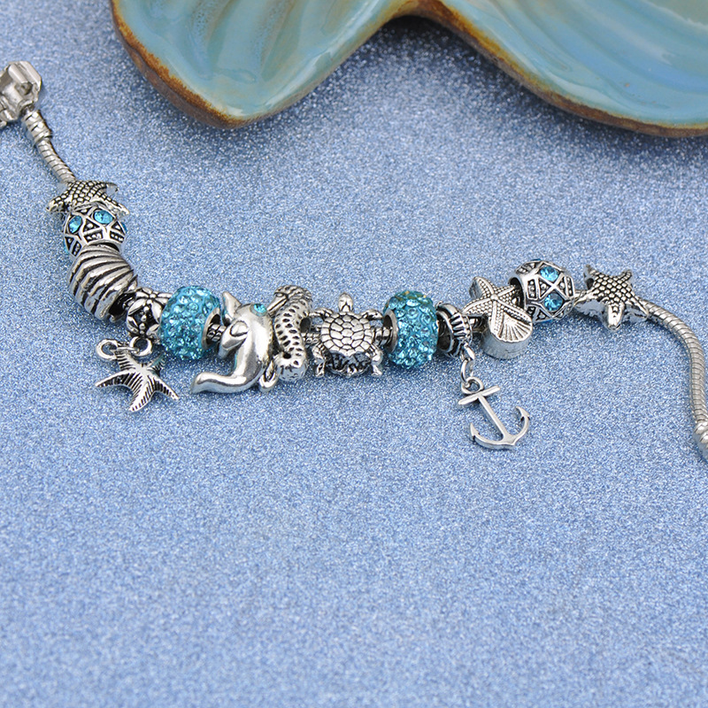 European and American New Retro Beaded Bracelets Cross-Border Popular Marine Life Bracelets Panjia Beads Seahorse and Conch Accessories
