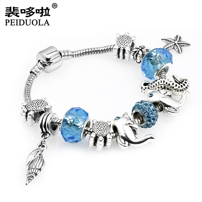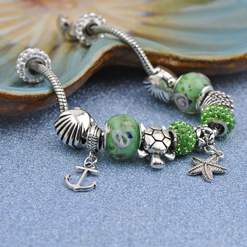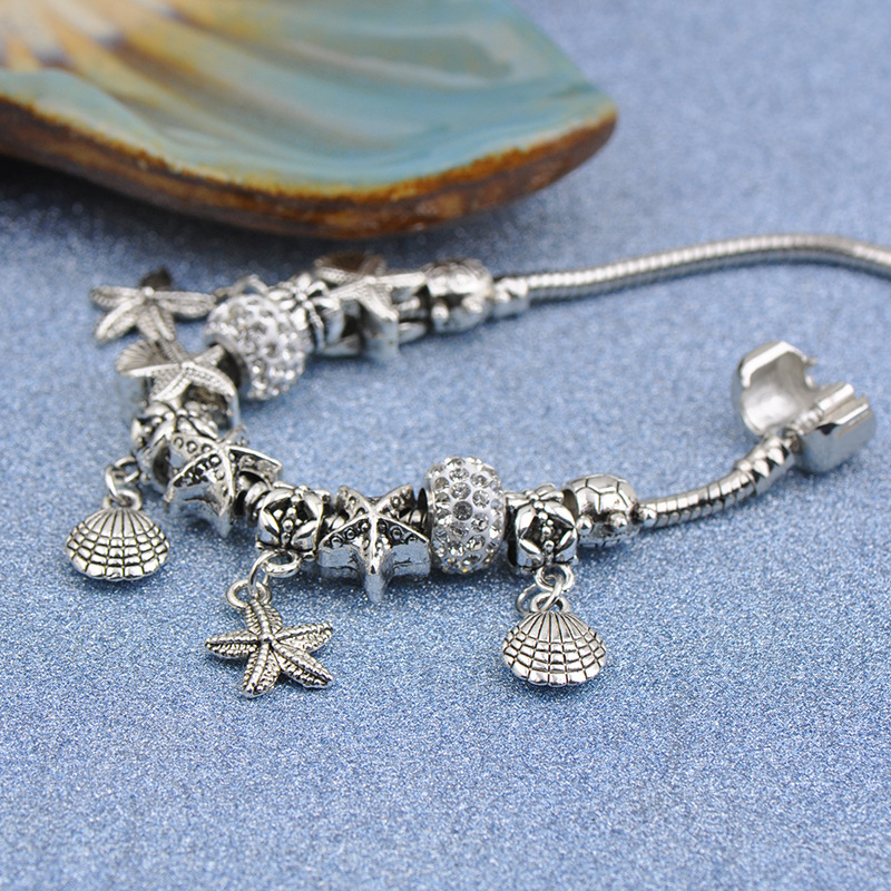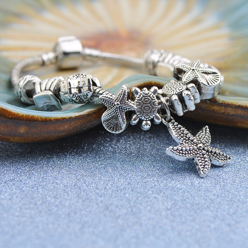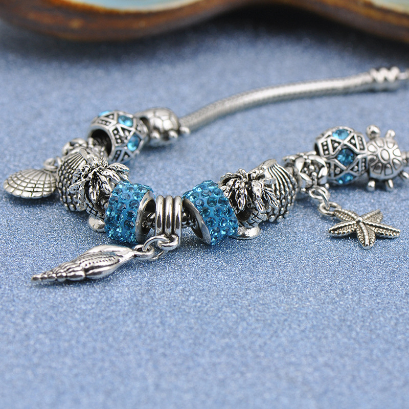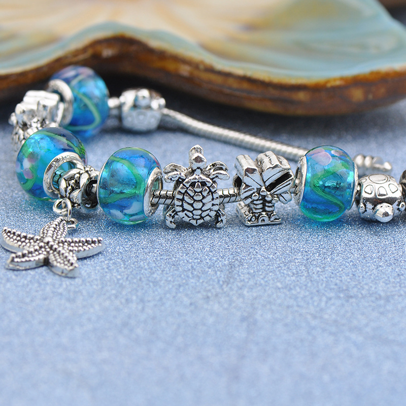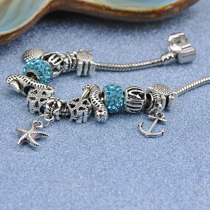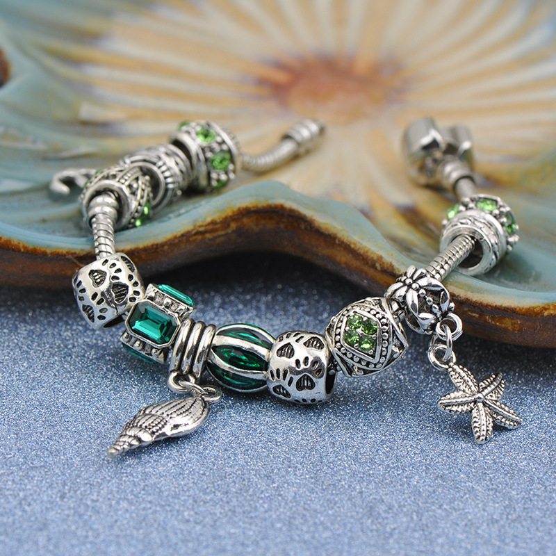 European and American New Retro Beaded Bracelets Cross-Border Popular Marine Life Bracelets Panjia Beads Seahorse and Conch Accessories