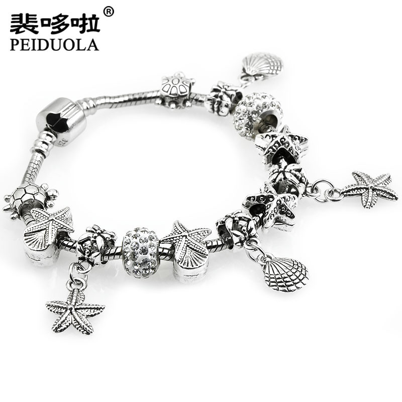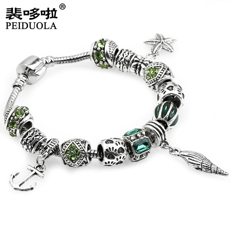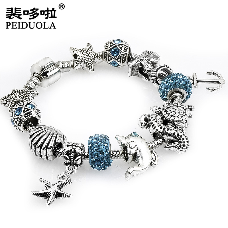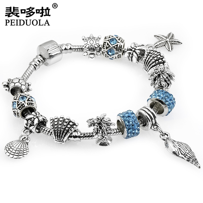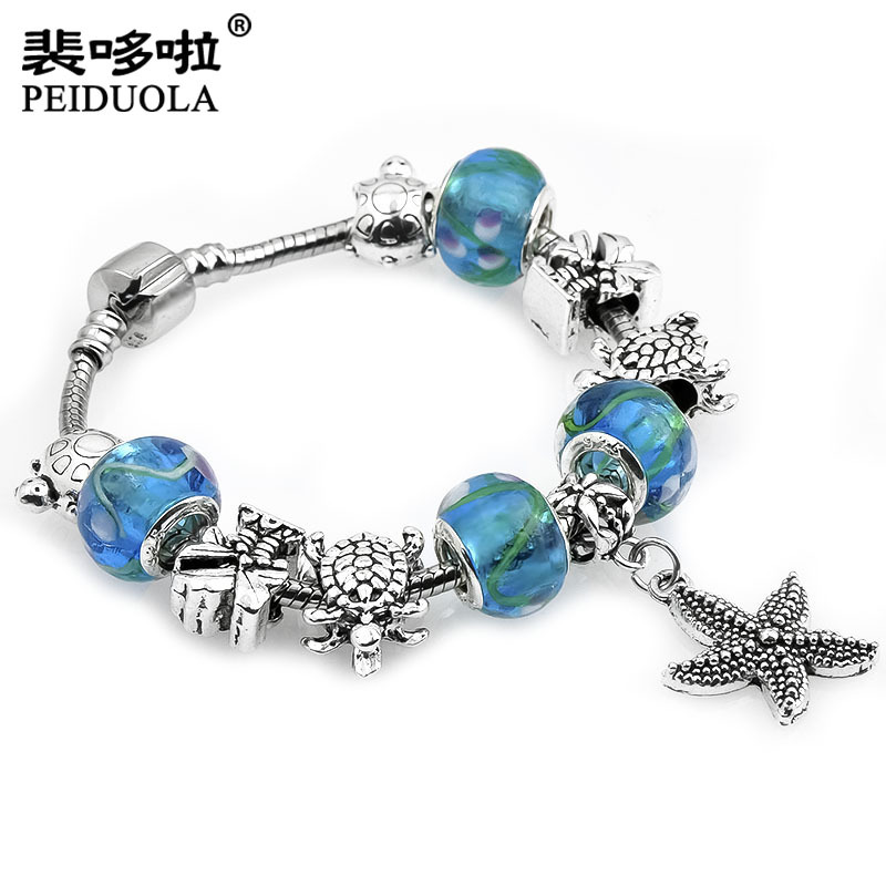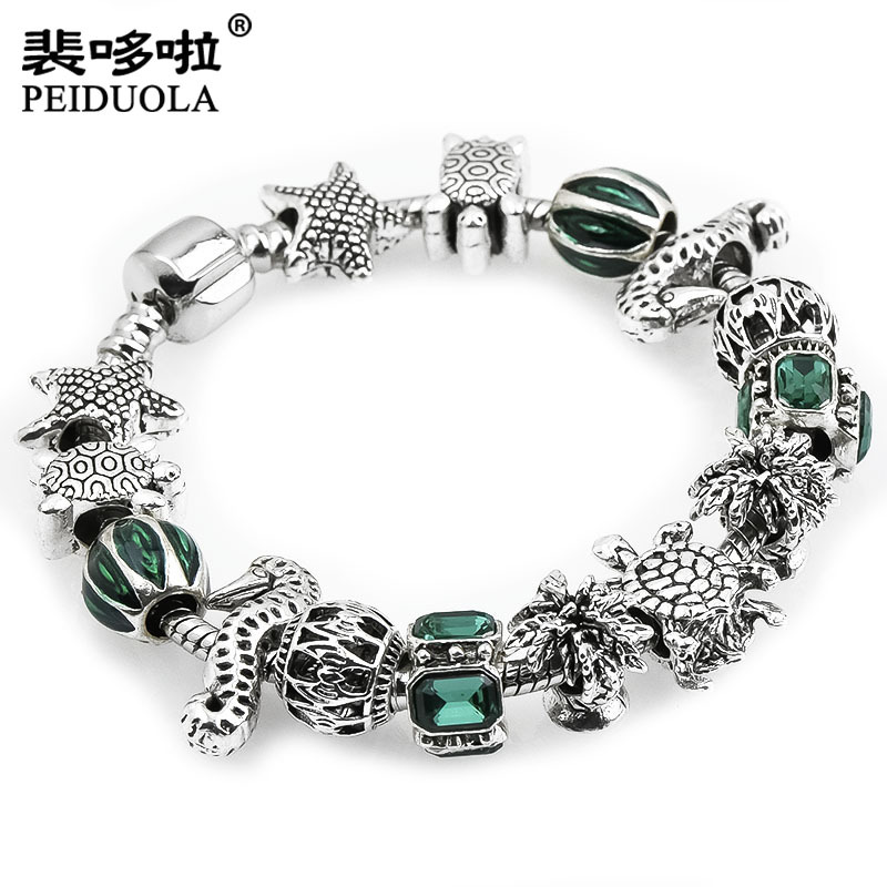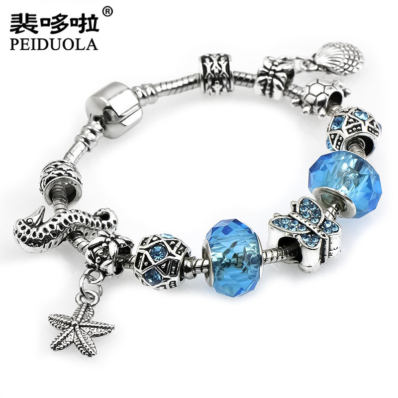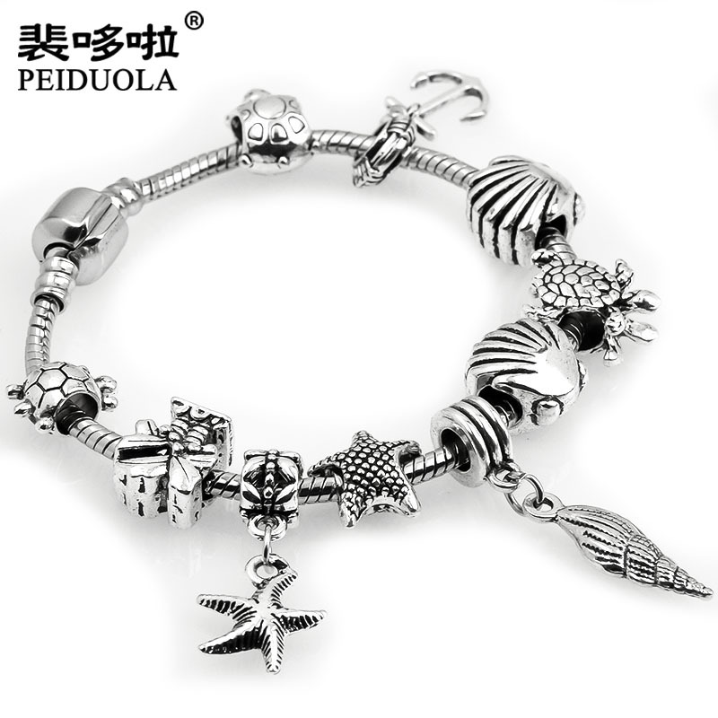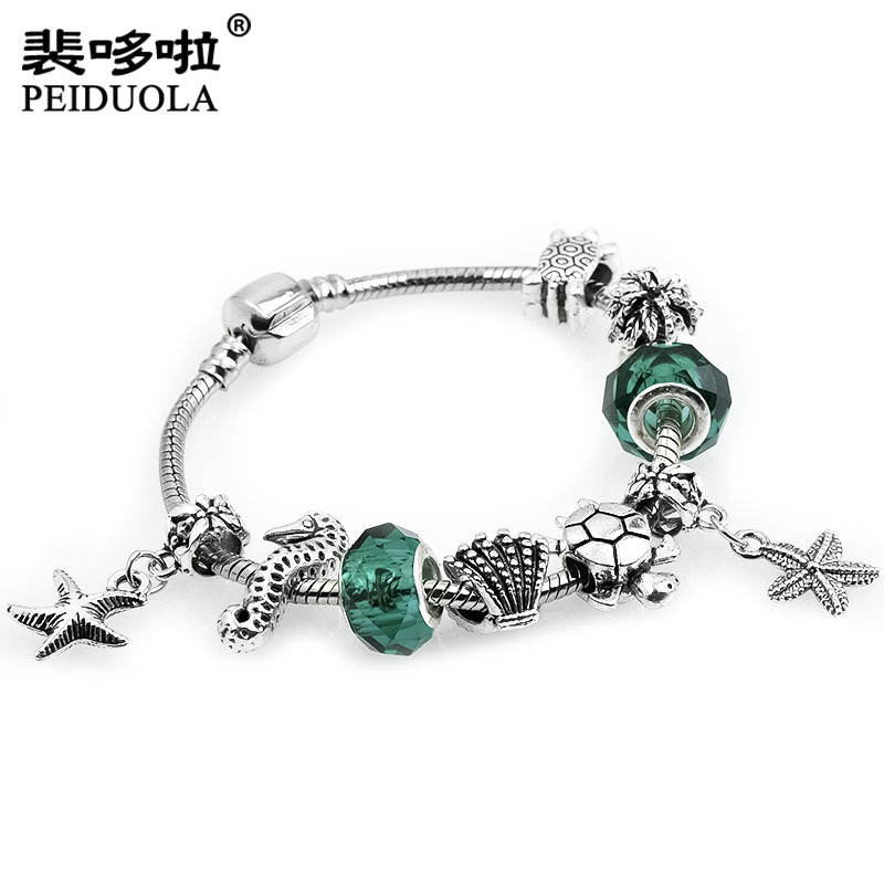 European and American New Retro Beaded Bracelets Cross-Border Popular Marine Life Bracelets Panjia Beads Seahorse and Conch Accessories