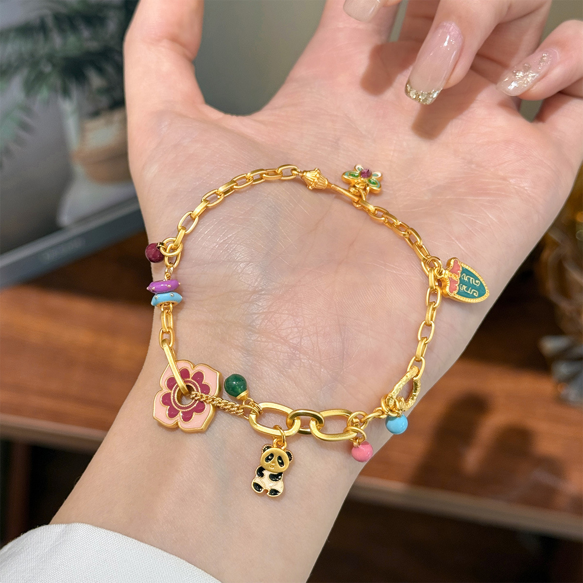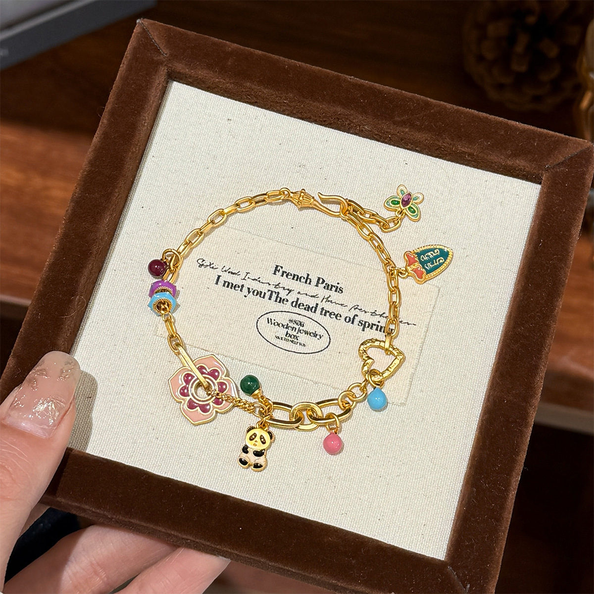 Fashion exquisite color dopamine oil enamel panda flower butterfly bracelet light luxury high-end chain bracelet