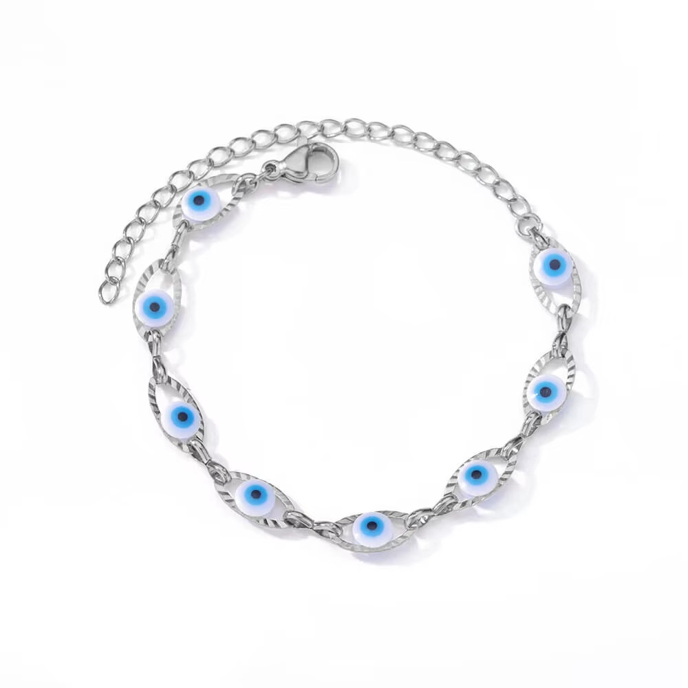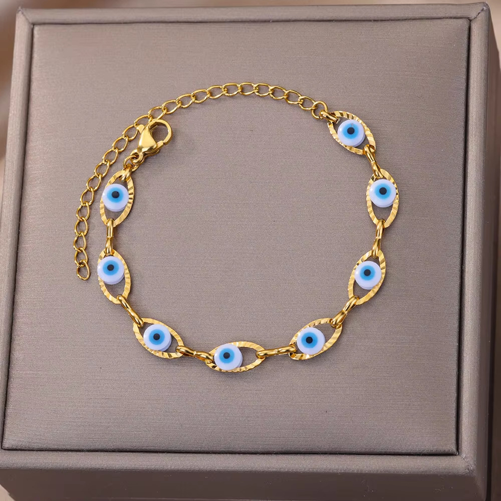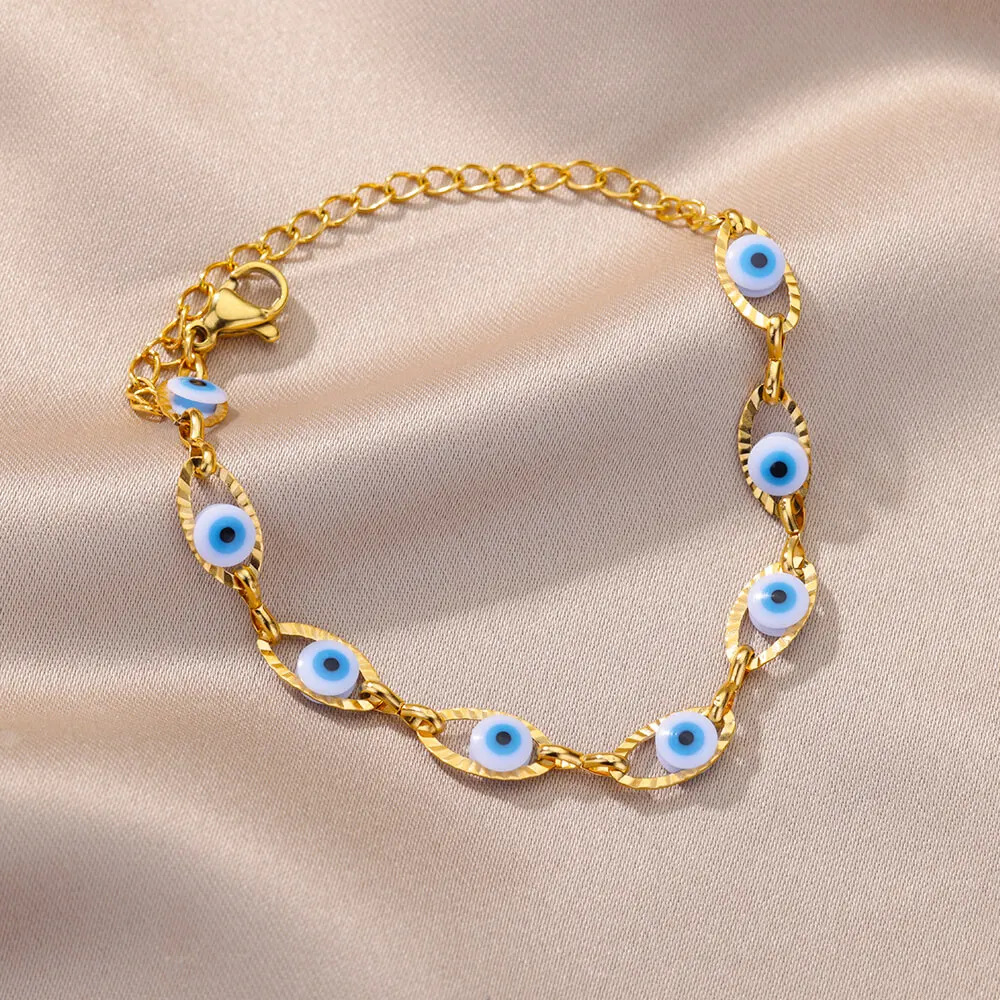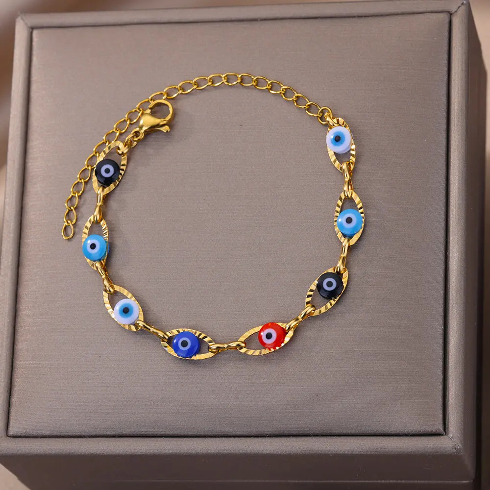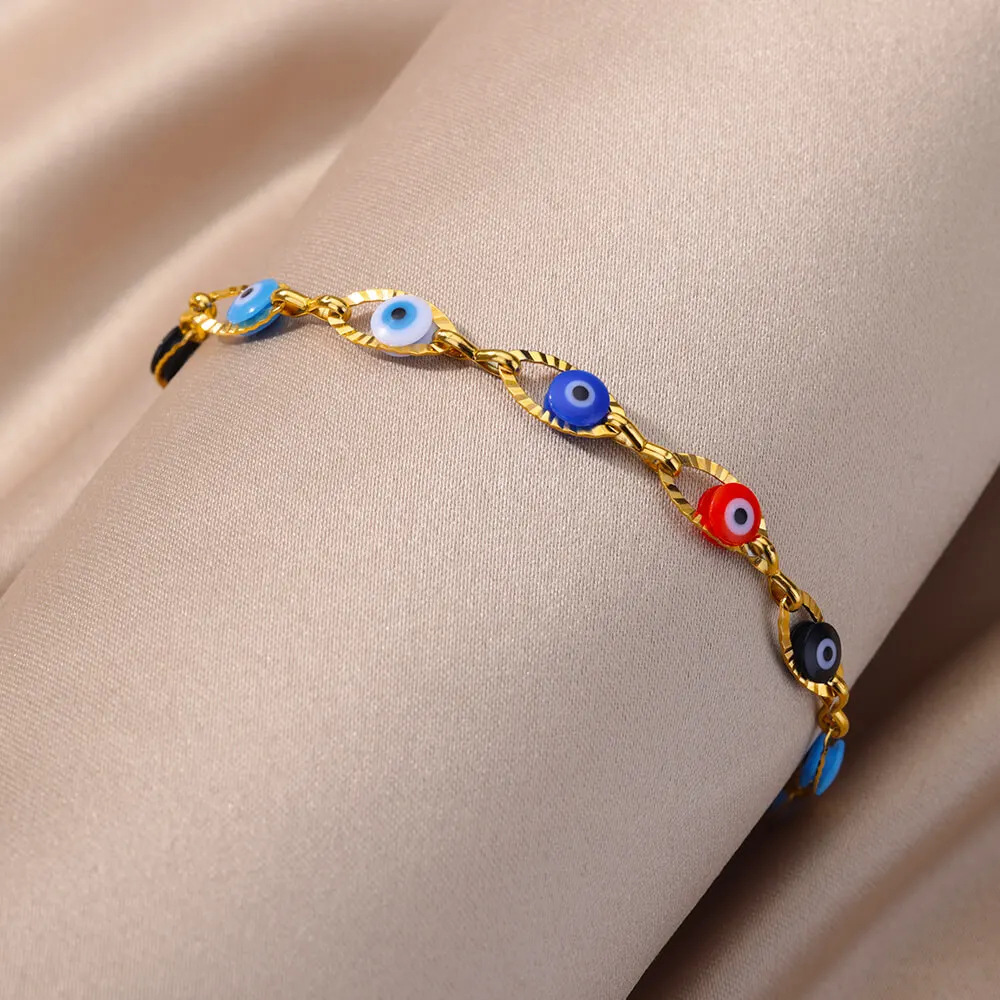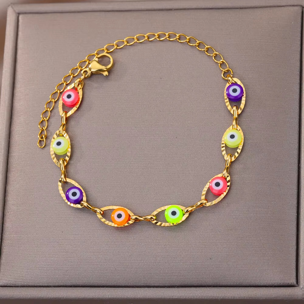 European and American fashion new personalized creative multi-color full devil's eye stainless steel gold-plated trend net red bracelet wholesale