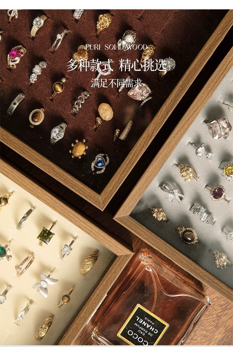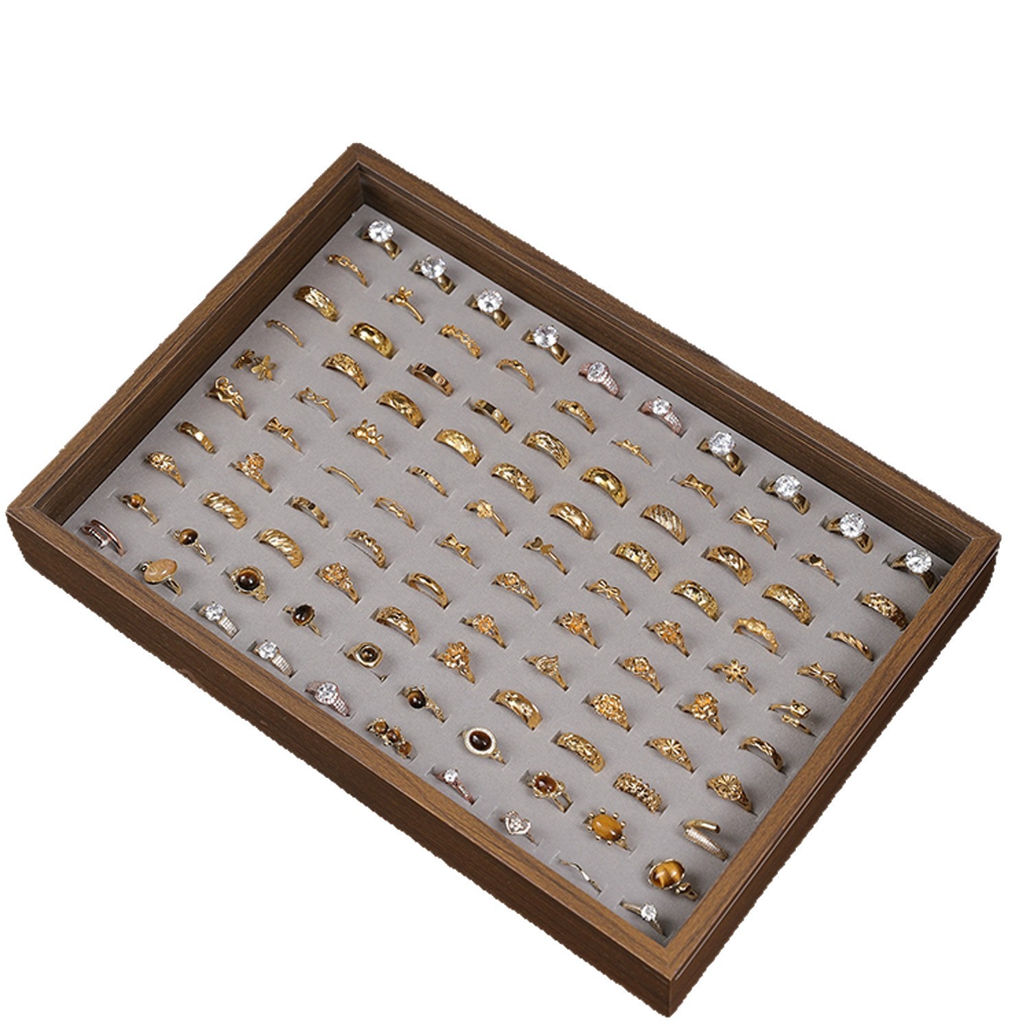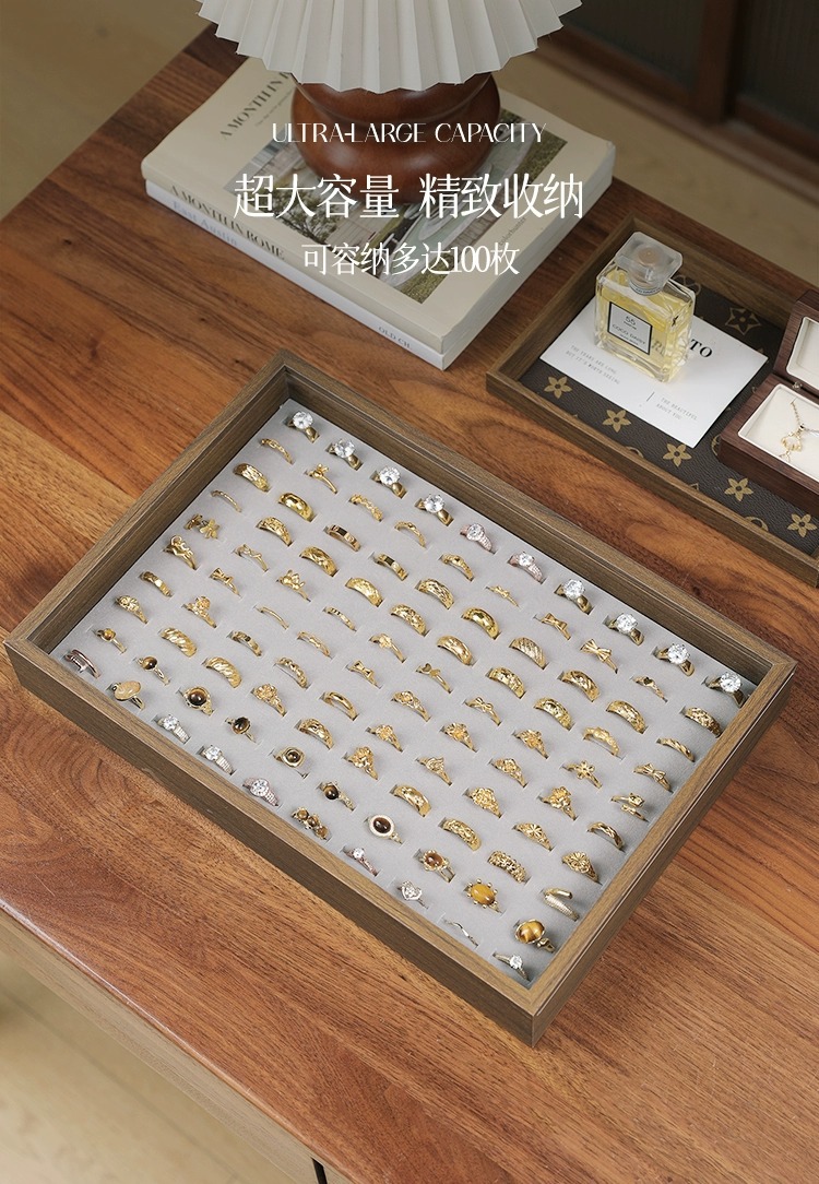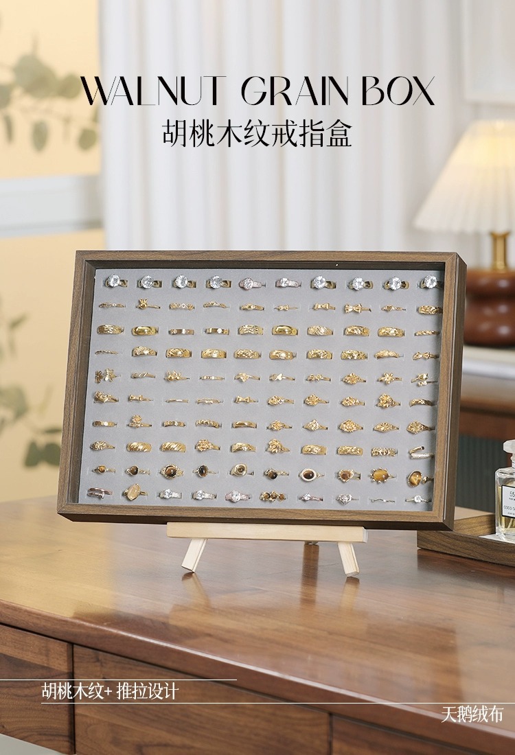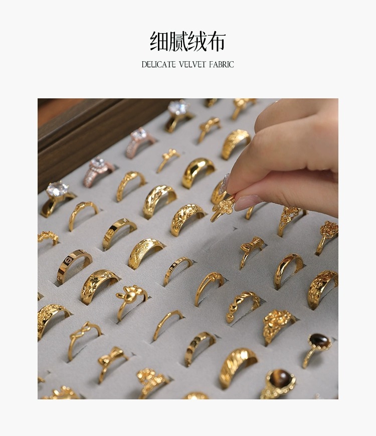 Color: Gray velvet hundred-digit ring box + stand [can store rings and earrings]