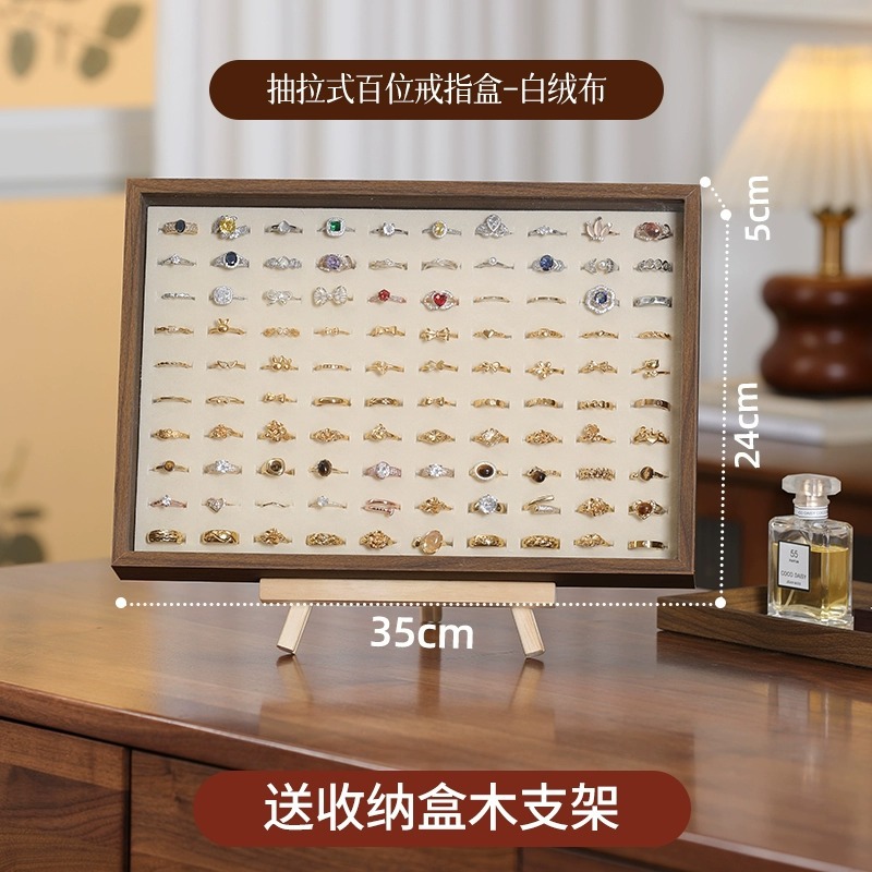 Color: White velvet hundred-digit ring box + stand [can store rings and earrings]